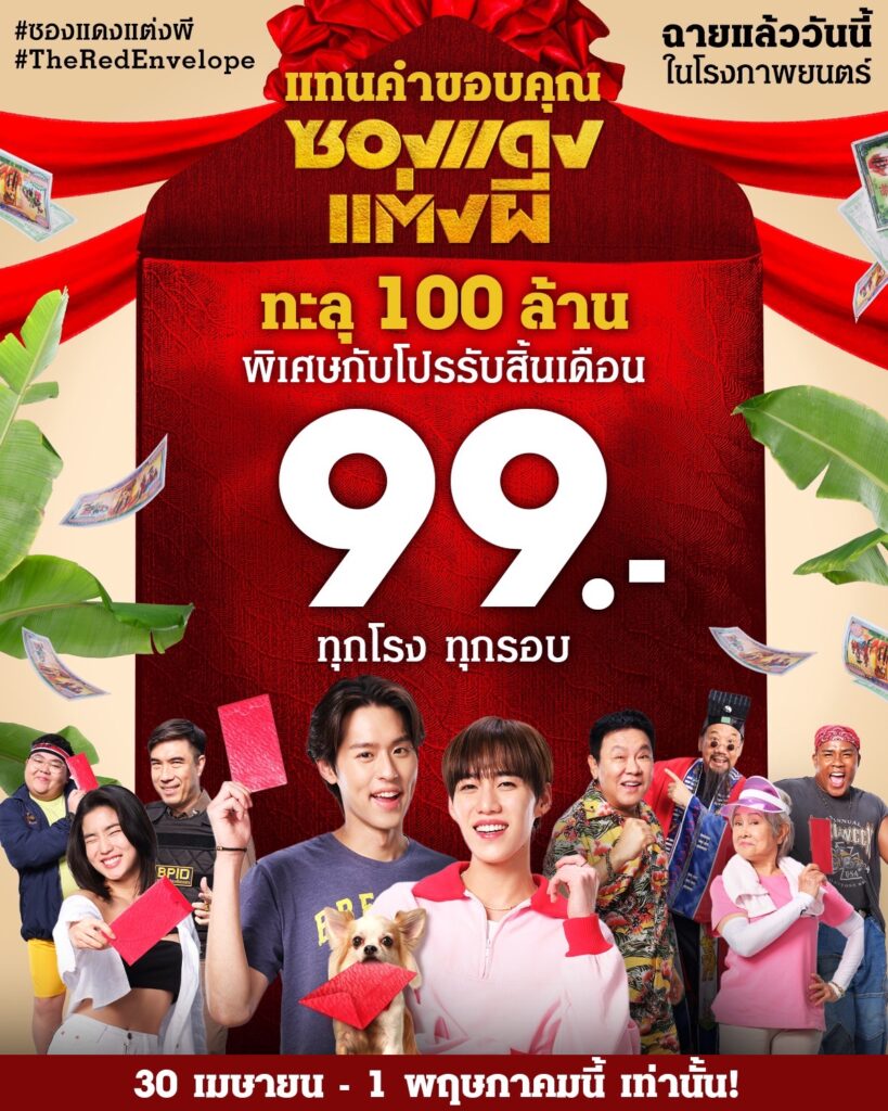 ด้วยการชมภาพยนตร์ ‘ซองแดงแต่งผี’ ในราคา 99 บาท* ทุกโรง ทุกรอบ เฉพาะวันที่ 30 เมษายน – 1 พฤษภาคมนี้ เท่านั้น!