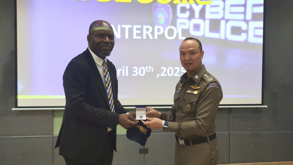 เมืีอเวลา 10.00 น. พล.ต.ท.ไตรรงค์ ผิวพรรณ ผบช.สอท. พล.ต.ต.สุรพงษ์ ไทยประเสริฐ ผบก.อก.บช.สอท. ให้การต้อนรับ Me.Adewale OGUNDELE ผู้ประสานงานอาวุโสฝ่ายปฏิบัติการศูนย์ต่อต้านการคอรัปชั่นและอาชญากรรมทางการเงิน อินเตอร์โพล (INTERPOL Financial Crime and Anti-Corruption Centre (IFCACC) และ Mr. Kiyotaka SEKINE, เจ้าหน้าที่ข่าวกรอง Criminal Intelligence Officer (CIO) พร้อม คณะ ที่เดินทางตรวจเยี่ยมโครงการ VICTOR ในการต่อสู้กับอาชญากรรมข้ามชาติ และแลกเปลี่ยนข้อมูล แนวคิดเกี่ยวกับภูมิทัศน์ของการก่ออาชญากรรมทางการเงินและแก๊งคอลเซ็นเตอร์ รวมถึงหารือแนวทางในการเสริมสร้างความร่วมมือกับ INTERPOL เพื่อยับยั้งและขจัดภัยคุกคามทางไซเบอร์และอาชญากรรมข้ามชาติ