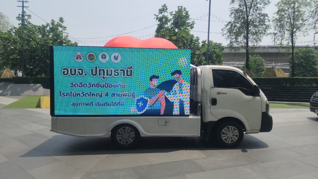 การดำเนินโครงการนี้ ได้รับความร่วมมืออย่างเต็มที่จากโรงพยาบาลส่งเสริมสุขภาพตำบล และสถานีอนามัยเฉลิมพระเกียรติ 60 พรรษา นวมินทราชินี ในสังกัดองค์การบริหารส่วนจังหวัดปทุมธานี จำนวน 24 แห่งรวมถึงโรงพยาบาลส่งเสริมสุขภาพตำบลสังกัดกระทรวงสาธารณสุข และโรงพยาบาลเครือข่ายทั้ง 7 อำเภอ และหน่วยบริการสาธารณสุขในจังหวัดปทุมธานี เพื่อให้ประชาชนสามารถเข้าถึงบริการฉีดวัคชีนได้อย่างสะดวกและทั่วถึง โดยมีเจ้าหน้าที่สาธารณสุขที่ได้รับการฝึกอบรมอย่างดี คอยให้บริการและให้คำแนะนำแก่แก่ประชาชนนอกจากการจัดเตรียมวัคชีนและสถานที่ฉีดแล้ว อบจ.ปทุมธานียังได้จัดทำแผนการประชาสัมพันธ์อย่างครอบคลุม โดยงานแถลงข่าวครั้งนี้ ประกอบด้วย พลตำรวจโท คำรณวิทย์ ธูปกระจ่าง นายกองค์การบริหารส่วนจังหวัดปทุมธานีและเจ้าหน้าที่เกี่ยวข้อง อบจ.ปทุมธานี ได้ปล่อยขบวนรถประชาสัมพันธ์ออกไปประชาสัมพันธ์