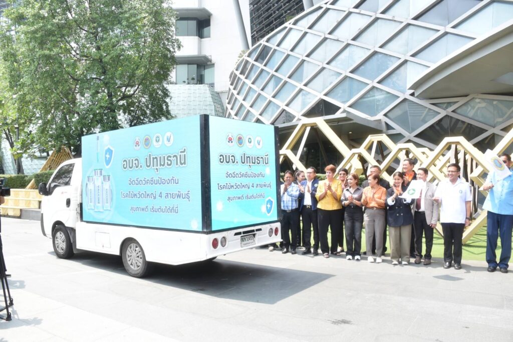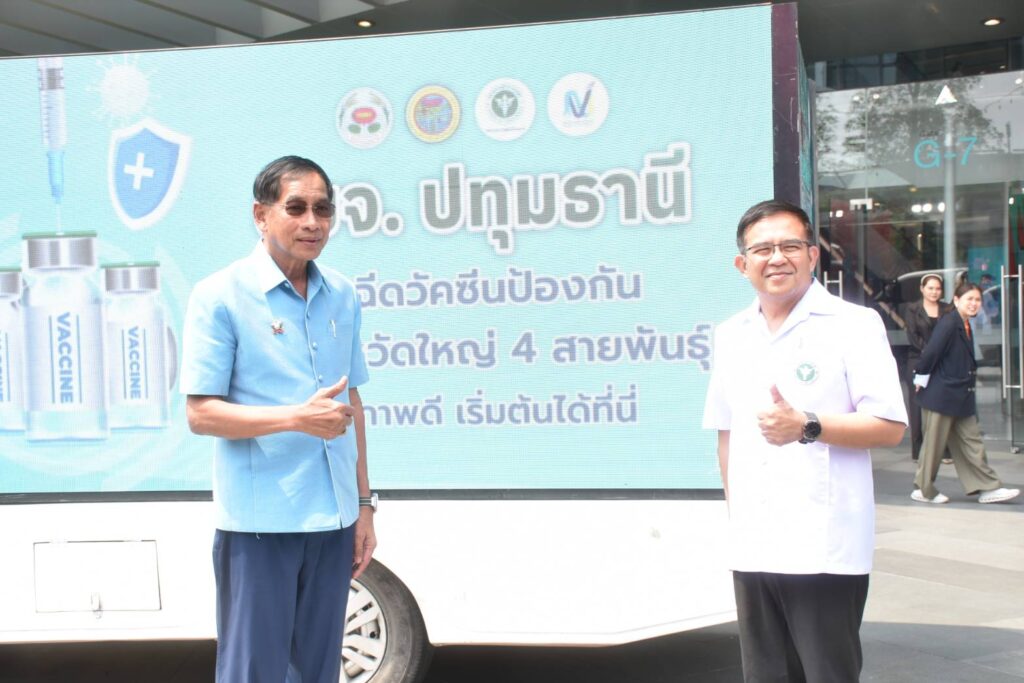 เมื่อวันที่ 1 พฤษภาคม 2568 ณ ลาดกิจกรรม สปอร์ตไลท์ ชั้น G ศูนย์การค้าฟิวเจอร์พาร์ครังสิต พลตำรวจโท คำรณวิทย์ ธูปกระจ่าง นายกองค์การบริหารส่วนจังหวัดปทุมธานี เป็นประธานกล่าวเปิดงานประชาสัมพันธ์การฉีดวัคซีนการป้องกันไข้หวัดใหญ่ 4 สายพันธุ์ ฟรี 320000 โดส แก่ประชาชนกลุ่มเสี่ยง จากข้อมูลจากสำนักงานสาธารณสุขจังหวัดปทุมธานี ระบุว่า สถานการณ์การระบาดของโรคไข้หวัดใหญ่จังหวัดปทุมธานี ตั้งแต่วันที่ 1 มกราคม – 25 กุมภาพันธ์ 2568 มีอัตราการป่วยด้วยโรคใช้หวัดใหญ่สูงเป็นอันดับที่ 2 ของเขตสุขภาพที่ 4 โดยกลุ่มอายุที่พบมากที่สุดคือ 5-9 ปี รองลงมาคือ 0-4 ปี และ 10-14 ปี ซึ่งสูงกว่าค่ามัธยฐานของ 5 ปีที่ผ่านมา และมีแนวโน้มที่จะเพิ่มสูงขึ้นอย่างต่อเนื่องในปี 2568 สถานการณ์ดังกล่าวสะท้อนให้เห็นถึงความจำเป็นเร่งด่วนในการดำเนินมาตรการป้องกันโรคอย่างมีประสิทธิภาพ เพื่อลดจำนวนผู้ป่วย ลดความรุนแรงของโรค และลดภาระของระบบสาธารณสุข