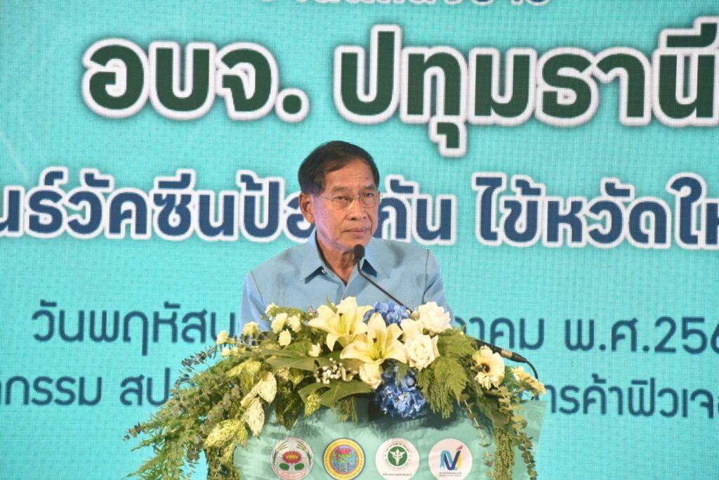 พลตำรวจโท คำรณวิทย์ ธูปกระจ่าง นายกองค์การบริหารส่วนจังหวัดปทุมธานี กล่าวว่า “โครงการนี้เป็นส่วนหนึ่งของนโยบายสำคัญของ อบจ.ปทุมธานี ในการดูแลสุขภาพและคุณภาพชีวิตของประชาชน เราเล็งเห็นถึงความสำคัญของการป้องกันโรค ซึ่งเป็นวิธีการที่มีประสิทธิภาพและคุ้มค่ามากกว่าการรักษา การจัดหาวัคซีนใช้หวัดใหญ่ 4 สายพันธุ์ จำนวนมาก เพื่อแจกจ่ายให้กับประชาชนกลุ่มเสี่ยงฟรี จึงเป็นการลงทุนที่สำคัญเพื่อปกป้องสุขภาพของชาวปทุมธานี และแสดงให้เห็นถึงความมุ่งมันของ อบจ.ปทุมธานี ในการเป็นผู้นำด้านการสาธารณสุขระดับท้องถิ่น”
