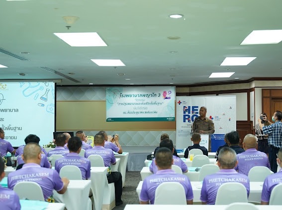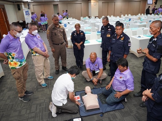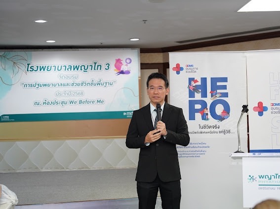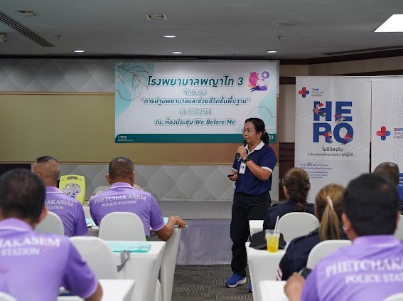 วันที่ 30 เม.ย.2568 เวลา 09.00 น. สน.เพชรเกษม ร่วมกับ โรงพยาบาลพญาไท 3 จัดอบรมการช่วยเหลือชีวิตขั้นพื้นฐาน (CPR) เพิ่มโอกาสการรอดชีวิตให้แก่เจ้าหน้าที่ตำรวจ อาสาสมัครตำรวจบ้านและประชาชน โดยได้รับเกียรติจาก พ.ต.อ.ปราโมทย์ จันทร์บุญแก้ว ผก.ก.สน.เพชรเกษม และนายแพทย์ อภิชัย โตวณะบุตร ผู้ช่วยผู้อำนวยการแพทย์โรงพยาบาลพญาไท 3 ให้เกียรติกล่าวต้อนรับการเข้าอบรมการช่วยชีวิตขั้นพื้นฐานนี้ถือว่าเป็นประโยชน์อย่างยิ่งในการนำไปใช้ช่วยเหลือประชาชนเมื่อเกิดเหตุฉุกเฉิน ภายในงานมีการสอนวิธีช่วยเหลือชีวิตขั้นพื้นฐาน CPR ทั้งภาคทฤษฎีและภาคปฏิบัติ และวิธีการใช้เครื่องกระตุ้นหัวใจไฟฟ้า AED ให้ผู้ร่วมเข้ารับการอบรมได้ปฏิบัติจริงทำให้มีความรู้ความเข้าใจที่ถูกต้องมากยิ่งขึ้น โดยได้วิทยากรผู้เชี่ยวชาญเฉพาะทาง พว.ดวงพร แหล่งหล้า พยาบาลชำนาญการ และทีมพยาบาล รพ.พญาไท3 เป็นผู้ให้ความรู้ในครั้งนี้ เพื่อใช้ในการช่วยเหลือประชาชนเมื่อเกิดเหตุฉุกเฉิน