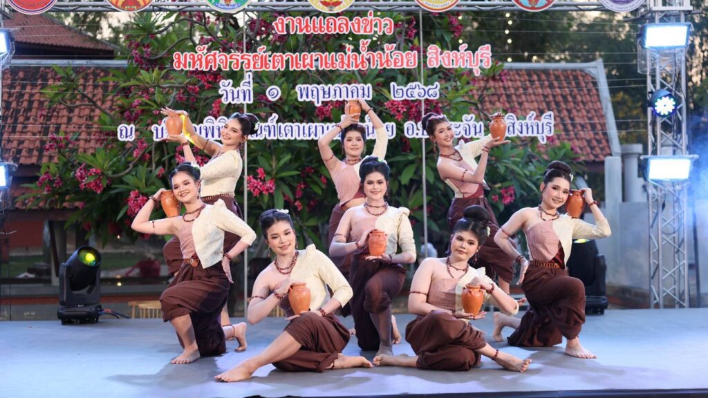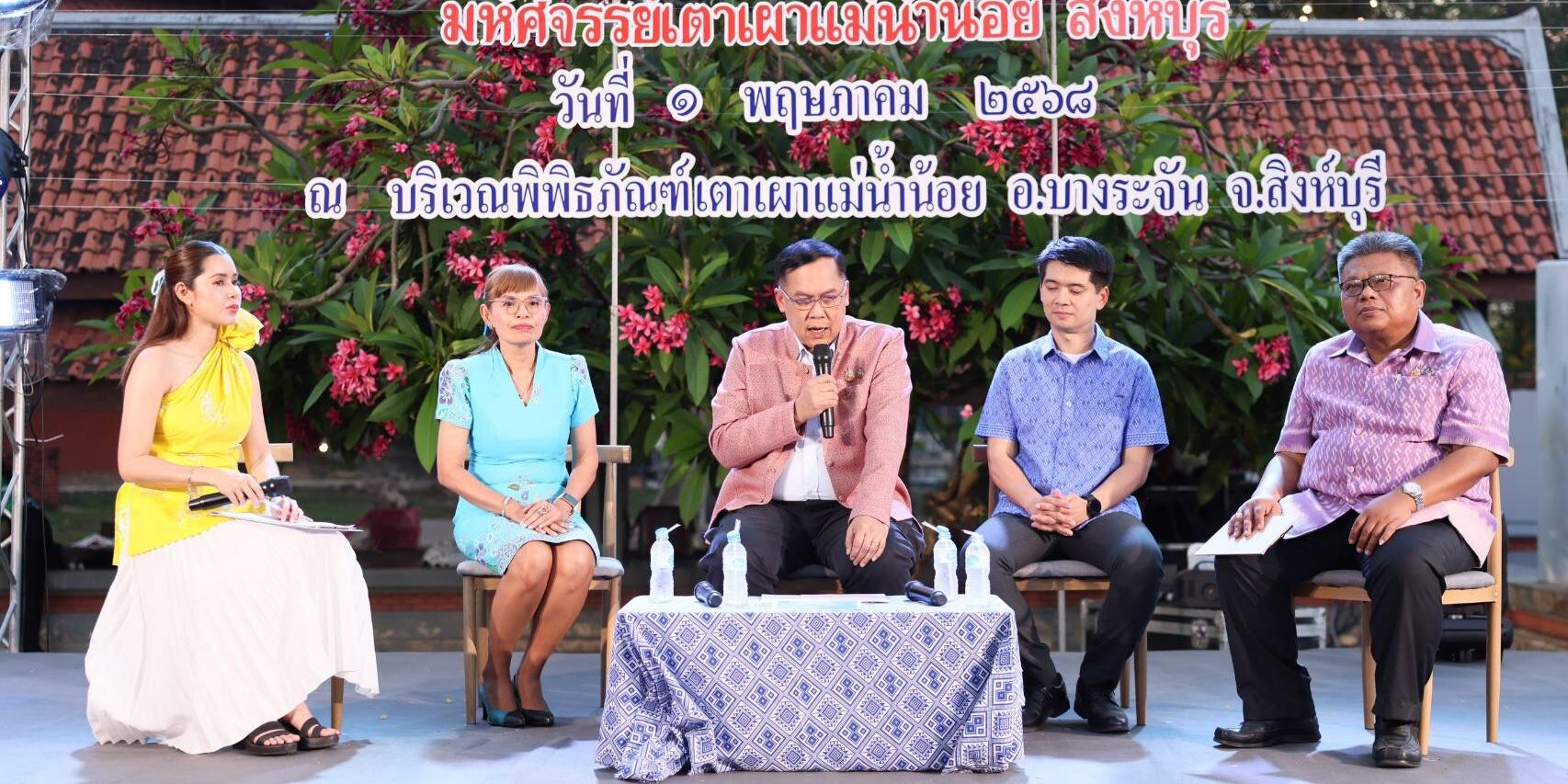 วันพฤหัสฯที่ 1 พฤษภาคม 2568 เวลา 18.00 น. นายวราดิศร อ่อนนุช รองผู้ว่าราชการจังหวัดสิงห์บุรี ร้อยโทสิทธิชัย ตัณฑสิทธิ์ ท่องเที่ยวและกีฬาจังหวัดสิงห์บุรี นายภัทร ใจเอม ปลัดองค์การบริหารส่วนจังหวัดสิงห์บุรี และนางประทีป ตัณฑะตะนัย พัฒนาการจังหวัดสิงห์บุรี แถลงข่าวการจัดงาน”มหัศจรรย์เตาเผาแม่น้ำน้อย” ณ บริเวณหน้าพิพิธภัณฑ์เตาเผาแม่น้ำน้อย ตำบลเชิงกลัด อำเภอบางระจัน จังหวัดสิงห์บุรี โดยมี หัวหน้าส่วนราชการ ภาคเอกชน ภาคประชาชน และสื่อมวลชนจังหวัดสิงห์บุรี รับฟังแถลงข่าวการจัดงานมหัศจรรย์เตาเผาแม่น้ำน้อยสิงห์บุรี มีวัตถุประสงค์เพื่อพัฒนาเส้นทางและแพ็คเก็จท่องเที่ยวเชิงประวัติศาสตร์ วัฒนธรรม วิถีชีวิตและจิตวิญญาณ ลุ่มแม่น้ำเจ้าพระยาป่าสัก เพิ่มจำนวนนักท่องเที่ยวทั้งชาวไทยและชาวต่างชาติ สร้างโอกาสทางเศรษฐกิจ สร้างงาน สร้างอาชีพ เชื่อมโยงห่วงโซ่คุณค่าของกลุ่มจังหวัดภาคกลางตอนบน