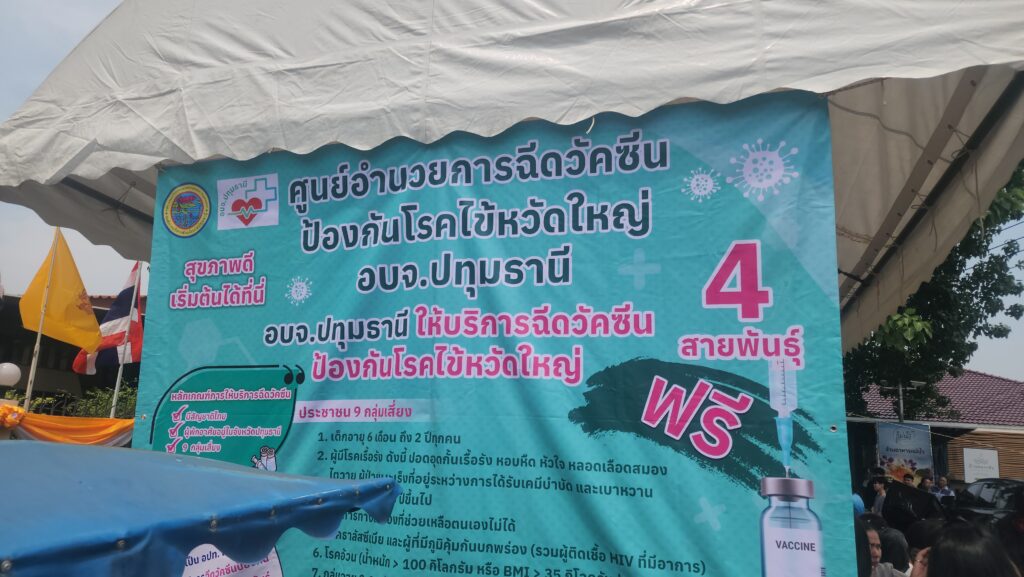 ซึ่งโครงการนี้ได้รับความร่วมมือจากโรงพยาบาลส่งเสริมสุขภาพตำบล สถานีอนามัยเฉลิมพระเกียรติ 60 พรรษา นวมินทราชินี ในสังกัดองค์การบริหารส่วนจังหวัดปทุมธานี 24 แห่ง โรงพยาบาลส่งเสริมสุขภาพตำบล สังกัดกระทรวงสาธารณสุขโรงพยาบาลเครือข่ายทั้ง 7 อำเภอ และหน่วยบริการสาธารณสุขในจังหวัดปทุมธานี เพื่อให้ประชาชนสามารถเข้าถึงบริการฉีดวัคซีนได้อย่างสะดวกและทั่วถึง โดยมีเจ้าหน้าที่สาธารณสุขที่ได้รับการฝึกอบรมคอยให้บริการและให้คำแนะนำกับประชาชน ทั้งนี้ สามารถเข้าร่วมรับบริการฉีดวัคซีนป้องกันโรคไข้หวัดใหญ่ 4 สายพันธุ์ฟรีได้วันที่ 2 พฤษภาคมเป็นต้นไป ณ อาคารอเนกประสงค์ สำนักงานองค์การบริหารส่วนจังหวัดปทุมธานี (ข้างแพขาว) จากนั้นตั้งแต่วันที่ 3 พฤษภาคมเป็นต้นไปเข้ารับบริการได้ทุกหน่วยบริการในพื้นที่ของตัวเอง สำหรับวัคซีนไข้หวัดใหญ่ 4 สายพันธุ์ที่เลือกใช้นี้เป็นวัคซีนที่ได้รับการรับรองคุณภาพและความปลอดภัยจากองค์การอาหารและยา และมีประสิทธิภาพป้องกันเชื้อไวรัสไข้หวัดใหญ่ครอบคลุมสายพันธุ์ที่คาดว่าจะระบาดในปีนี้