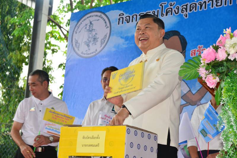 นายปรัชญา เปปะตัง รองผู้ว่าราชการจังหวัดลพบุรี เป็นประธานพิธีเปิด กิจกรรมโค้งสุดท้ายการเลือกตั้งสมาชิกสภาเทศบาลเมืองลพบุรี และนายกเทศมนตรีเมืองลพบุรี ณ บริเวณโดมอเนกประสงค์หน้าสำนักงานเทศบาลเมืองลพบุรี โดยมี นางสาวมยุรา สุทธิพิบูลย์ ผู้อำนวยการการเลือกตั้งเทศบาลเมืองลพบุรี คณะกรรมการการเลือกตั้งเทศบาลเมืองลพบุรี คณะกรรมการการเลือกตั้งประจำจังหวัดลพบุรี พนักงานเทศบาล พนักงานครู ลูกจ้าง อสม.เทศบาลเมืองลพบุรี เข้าร่วมในพิธี