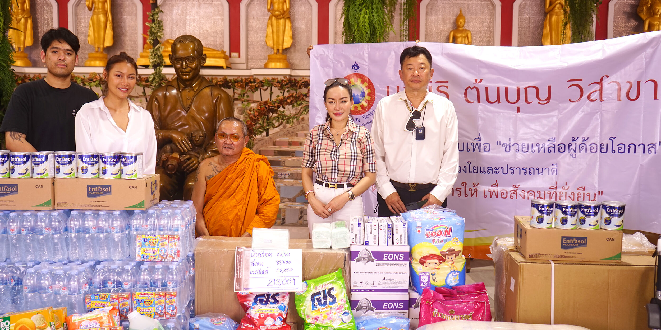 สำหรับเงินบริจาคที่นำไปมอบในครั้งนี้ ได้รับการสนับสนุนจากรายได้กิจกรรม “ผ้าไทย เอกลักษณ์ไทย เทิดไท้พระบรมราชชนนีพันปีหลวง ย้อนวันวาน ณ วังพญาไท” และโครงการประกาศเกียรติคุณมอบรางวัล “พญาราชสีห์” ประจำปี พ.ศ.2568 ซึ่งมูลนิธิต้นบุญ วิสาขา เป็นผู้จัดขึ้น