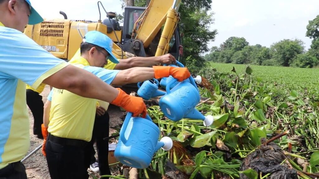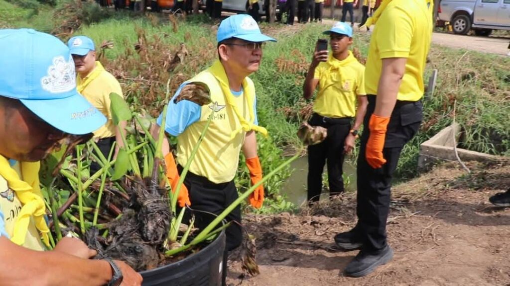 วันอังคารที่ 6 พฤษภาคม พ.ศ.2568 เวลา 09.30 น.นายสุเมธ ธีรนิติ ผู้ว่าราชการจังหวัดสิงห์บุรี เป็นประธานในกิจกรรมจิตอาสาต้านภัยแล้ง และกิจกรรมจิตอาสาบำเพ็ญสาธารณประโยชน์ เนื่องในวันปฐมบรมราชภิเษก พระบาทสมเด็จพระเจ้าอยู่หัว รัชกาลที่ 10 วันฉัตรมงคล 4 พฤษภาคม โดยมีนายวราดิศร อ่อนนุช รองผู้ว่าราชการจังหวัดสิงห์บุรี ทหาร ตำรวจ หัวหน้าส่วนราชการ นายอำเภอพหรมบุรี นายกบ้านหม้อ กำนัน ผู้ใหญ่บ้าน จิตอาสา พระราชทาน และพี่น้องประชาชนจิตอาสาเข้าร่วมกิจกรรม ทำความสะอาด ขุดลอกคูคลอง เก็บผักตบชวาและทำปุ๋ยชีวภาพ ณ ริมน้ำลำรางมะตัน หมู่ที่ 5 ตำบลบ้านหม้อ อำเภอพรหมบุรี จังหวัดสิงห์บุรี