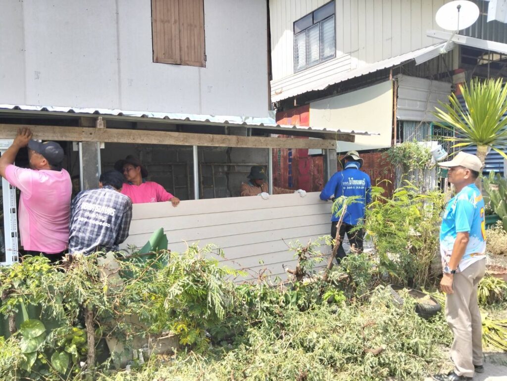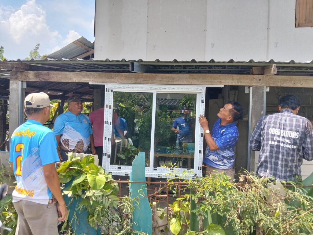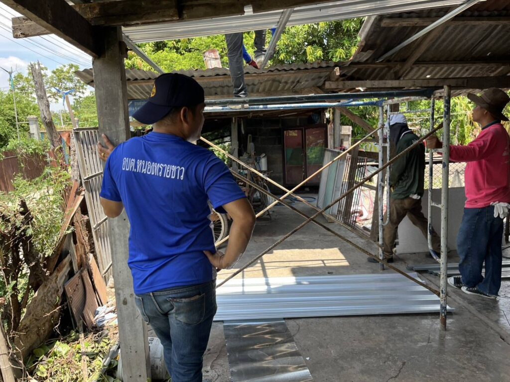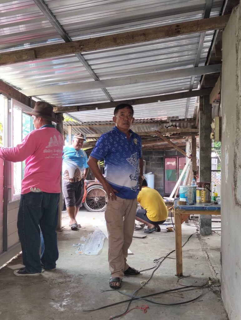 ได้นำทีมงานช่าง อบต. หนองทรายขาว ลงพื้นที่บ้านของ “นายประกิจ ละอองพาว บ้านเลขที่ 23 หมู่ที่ 5 บ้านหนองทรายขาว ต.หนองทรายขาว” ดำเนินการซ่อมแซมบ้านพักอาศัยผู้ที่มีรายได้น้อยประจำปี 2568 บ้านพอเพียง จังหวัดลพบุรี “โครงการสวัสดิการชุมชนจังหวัดลพบุรี ” สภาชุมชนตำบลหนองทรายขาว ซ่อมแซมหลังคาใหม่ และทำการเปลี่ยนฝาผนังใหม่ พร้อมติดตั้งบานกระจก) ส่งงานวันนี้