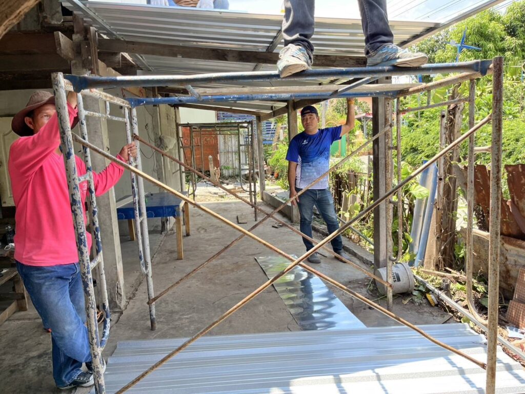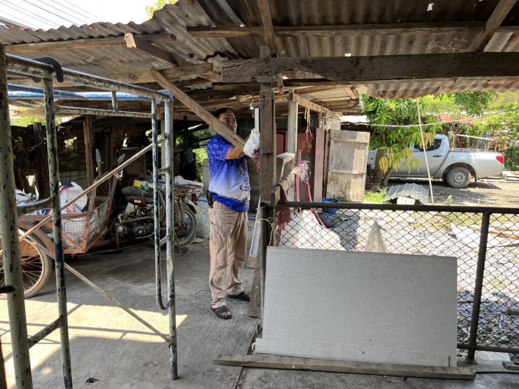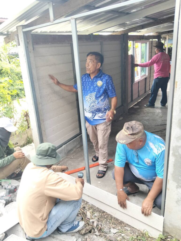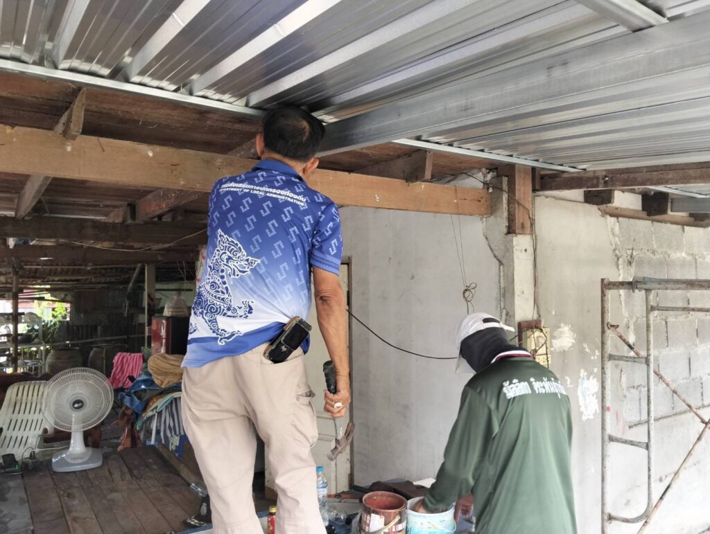 ได้นำทีมงานช่าง อบต. หนองทรายขาว ลงพื้นที่บ้านของ “นายประกิจ ละอองพาว บ้านเลขที่ 23 หมู่ที่ 5 บ้านหนองทรายขาว ต.หนองทรายขาว” ดำเนินการซ่อมแซมบ้านพักอาศัยผู้ที่มีรายได้น้อยประจำปี 2568 บ้านพอเพียง จังหวัดลพบุรี “โครงการสวัสดิการชุมชนจังหวัดลพบุรี ” สภาชุมชนตำบลหนองทรายขาว ซ่อมแซมหลังคาใหม่ และทำการเปลี่ยนฝาผนังใหม่ พร้อมติดตั้งบานกระจก) ส่งงานวันนี้