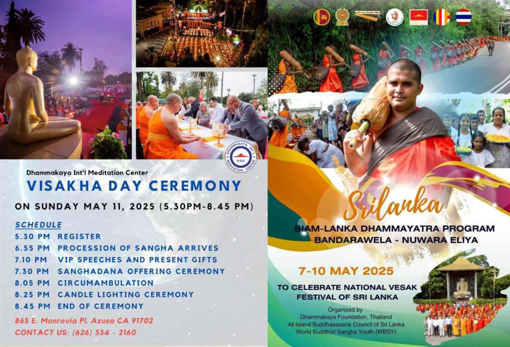 วัดพระธรรมกายขอเชิญพุทธศาสนิกชนร่วมกิจกรรมวันวิสาขบูชา ในวันอาทิตย์ที่ 11 พฤษภาคม พ.ศ. 2568 เวลา 09.30 – 20.30 น. ณ วัดพระธรรมกาย จ.ปทุมธานี หรือติดตามถ่ายทอดสดทาง Facebook: สำนักสื่อสารองค์กร วัดพระธรรมกาย , เว็บไซต์: www.gbnus.com สามารถสอบถามข้อมูลเพิ่มเติม โทร. 02-831-1000