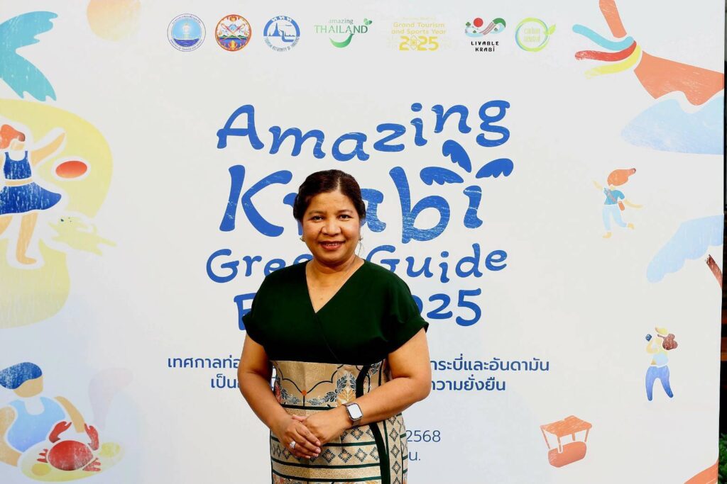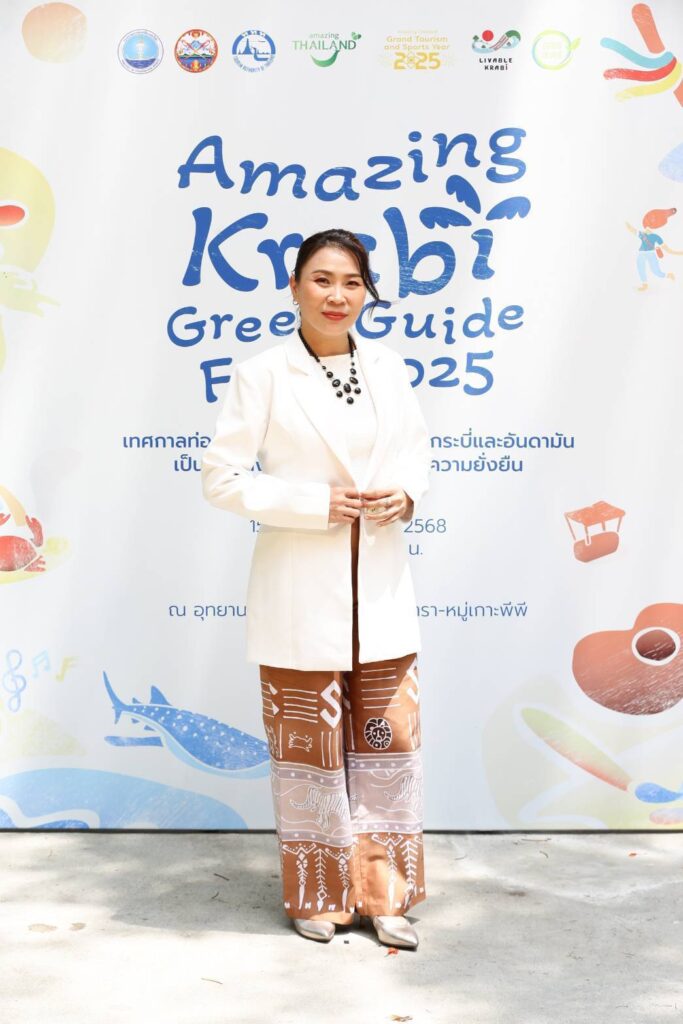 นางจิระวดี คุณทรัพย์ รองด้านตลาดยุโรป อเมริกา ตะวันออกกลาง และแอฟริกา กล่าวว่า “งาน Amazing Krabi Green Guide Fest 2025 ถือเป็นหนึ่งในกิจกรรมภายใต้โครงการ Krabi Prototype ที่ ททท. ร่วมกับพันธมิตรภาครัฐและเอกชนตลอดห่วงโซ่อุปทานการท่องเที่ยวในการยกระดับจังหวัดกระบี่สู่การเป็นพื้นที่ต้นแบบจุดหมายปลายทางแห่งความยั่งยืน เพื่อผลักดันแนวคิด Sustainable Tourism ที่โลกปัจจุบันให้ความสำคัญแก่อุตสาหกรรมท่องเที่ยวไทยให้พัฒนาสู่ความยั่งยืนอย่างเป็นรูปธรรม ทั้งการมุ่งหน้ายกระดับผู้ประกอบการด้วยการส่งเสริมให้ผู้ประกอบการ ชุมชนท่องเที่ยว เจ้าของแหล่งท่องเที่ยวในจังหวัดกระบี่ เข้าสู่การรับรองตามเกณฑ์ความยั่งยืนของ ททท. ได้แก่ Sustainable Tourism Acceleration Rating (STGs STAR),CF-Hotels และรางวัลอุตสาหกรรมการท่องเที่ยวไทย รวมถึงการเข้าสู่มาตรฐานความยั่งยืนในระดับสากล ได้แก่ Green Destinations Top 100 Stories และ Tourism Cares โดยสำหรับงาน Amazing Krabi Green Guide Fest 2025 ที่จัดขึ้นในครั้งนี้ เป็นเทศกาลท่องเที่ยวเชิงอนุรักษ์ที่มุ่งสู่การเป็น CARBON NEUTRAL EVENT โดยจะเปลี่ยนการเดินทางท่องเที่ยวให้สร้างผลกระทบเชิงบวกต่อชุมชน สิ่งแวดล้อม และเศรษฐกิจฐานรากในระดับท้องถิ่น โดยเฉพาะ ในจังหวัดกระบี่ที่มีความพร้อม ทั้งทรัพยากรธรรมชาติที่งดงาม เอกลักษณ์ทางวัฒนธรรม และความร่วมมืออย่างเข้มแข็งของทุกภาคส่วน งานในครั้งนี้ออกแบบให้เชื่อมโยงกับแนวคิด 7 Greens และ 5 Must Do in Thailand เพื่อส่งเสริมประสบการณ์ท่องเที่ยวที่มีคุณค่า และสร้างความเข้าใจใหม่ๆ ให้แก่นักท่องเที่ยว เพื่อสร้างแรงบันดาลใจในการมีส่วนร่วมในการอนุรักษ์สิ่งแวดล้อมและร่วมขับเคลื่อนกระบี่สู่อนาคตแห่งการท่องเที่ยวอย่างยั่งยืน”