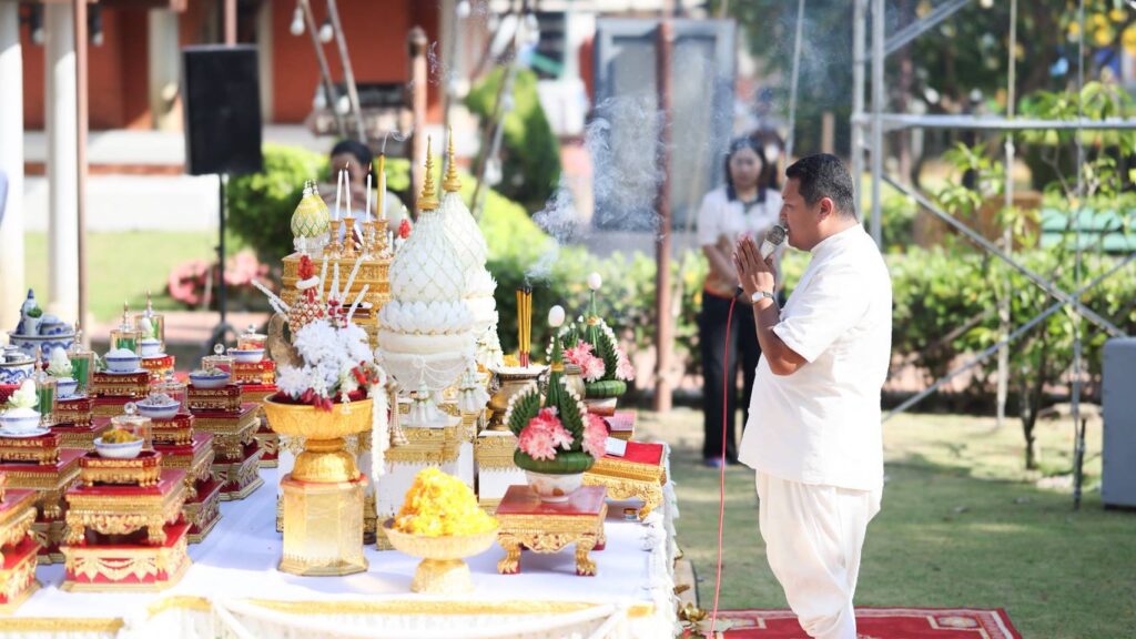 วันศุกร์ที่ 9 พฤษภาคม 2568 นายสุเมธ ธีรนิติ ผู้ว่าราชการจังหวัดสิงห์บุรี พร้อมด้วยนางวาสนา ธีรนิติ นายกเหล่ากาชาดจังหวัดสิงห์บุรี นางสาววีรวรรณ จันทนเสนี รองผู้ว่าราชการจังหวัดสิงห์บุรี พร้อมด้วยหัวหน้าส่วนราชการ ข้าราชการ พ่อค้า ประชาชน ได้ร่วมพิธีบวงสรวงสิ่งศักดิ์สิทธิ์ เพื่อเป็นสิริมงคลในการจัดงาน "มหัศจรรย์เตาเผาแม่น้ำน้อย" ประจำปี 2568 ที่กำหนดจัดขึ้นระหว่างวันที่ 9 - 11 พฤษภาคม 2568 ณ บริเวณพิพิธภัณฑ์เตาเผาแม่น้ำน้อย วัดพระปรางค์ ตำบลเชิงกลัด อำเภอบางระจัน จังหวัดสิงห์บุรี โดยมีวัตถุประสงค์เพื่อเพิ่มขีดความสามารถในการแข่งขันด้านการท่องเที่ยว สร้างโอกาสและกระจายรายได้ให้แก่ประชาชนในพื้นที่กลุ่มจังหวัดภาคกลางตอนบน