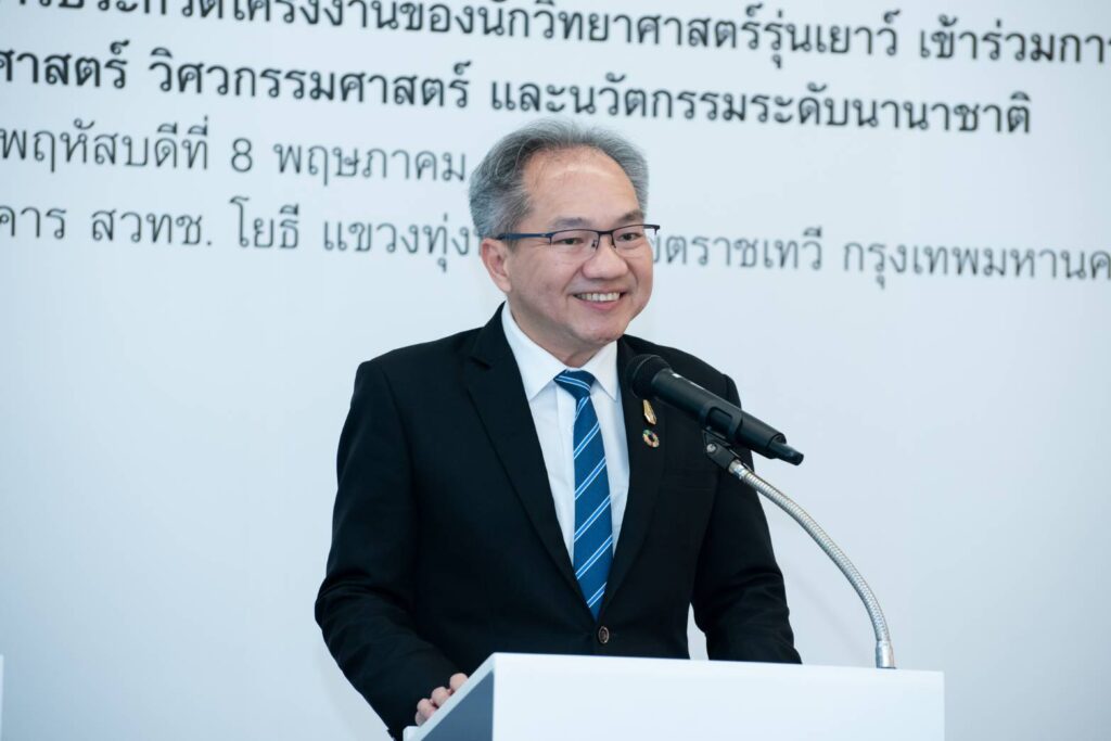 ศาสตราจารย์ ดร.ชูกิจ ลิมปิจำนงค์ ผู้อำนวยการ (สวทช.) กล่าวว่า (สวทช.) มีภารกิจหลักในการส่งเสริมการพัฒนาวิทยาศาสตร์ เทคโนโลยี และนวัตกรรมเพื่อขับเคลื่อนการพัฒนาประเทศอย่างยั่งยืน เราให้ความสำคัญกับการเสริมสร้างกำลังคนด้านวิทยาศาสตร์และนวัตกรรม ตั้งแต่ระดับต้นน้ำ ผ่านการส่งเสริมให้เยาวชนมีเวทีในการแข่งขันและแสดงศักยภาพ เพื่อสร้างรากฐานที่แข็งแกร่งสำหรับนักวิจัยและนวัตกรรุ่นใหม่ในอนาคต การเข้าร่วมแข่งขันในครั้งนี้ถือเป็นอีกก้าวสำคัญในการปลูกฝังแนวคิดเชิงวิทยาศาสตร์ ความคิดสร้างสรรค์ และการพัฒนาทักษะที่จำเป็นต่อโลกยุคใหม่