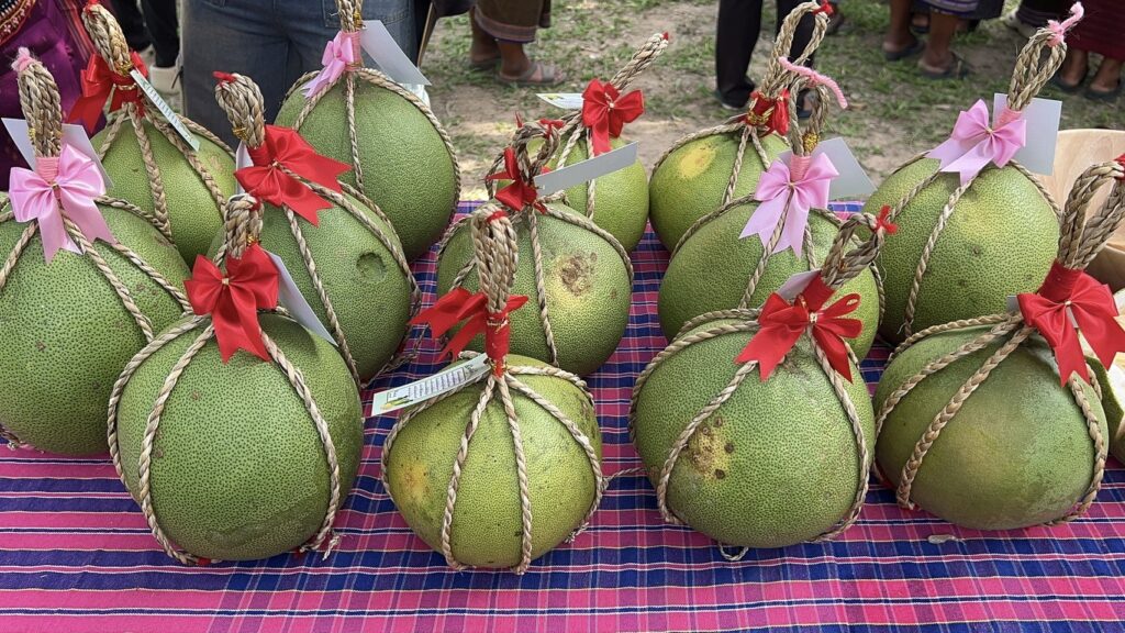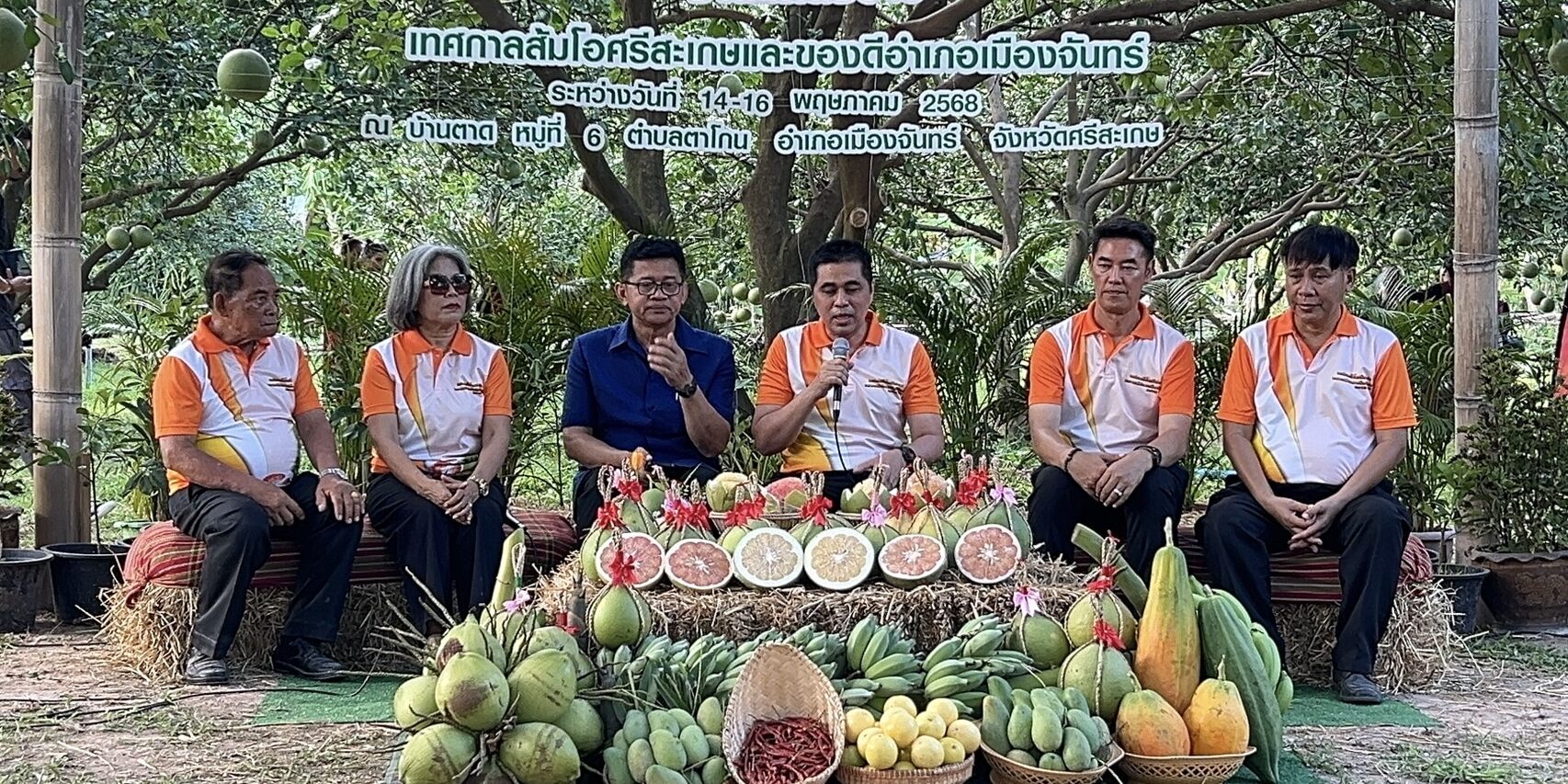 นายอนุพงศ์ สุขสมนิตย์ ผู้ว่าราชการจังหวัดศรีสะเกษ และนายแท่ง สุระ นายก อบต.ตาโกน เจ้าของพื้นที่ในการส่งเสริมให้เกษตรกรปลูกขยายผลผลิตส้มโอบ้านตาด พร้อมด้วยหอการค้าจังหวัด, สมาคมธุรกิจท่องเที่ยวศรีสะเกษ, เกษตรจังหวัด, นายณัฎฐพงษ์ บุดดี เจ้าของสวนส้มโอรายแรก และนายอำเภอเมืองจันทร์ ได้ร่วมกันเปิดแถลงข่าว แก่สื่อมวลชน พร้อมนำทำเมนู ยำส้มโอศรีสะเกษ และเปิดตัวผลิตภัณฑ์ ทั้งขนมเปี๊ยะจากเปลือกส้มโอ, ส้มโอเชื่อม, ยาหม่องส้มโอ, ยาดมสมุนไพรส้มโอ และเปลือกส้มโอตากแห้ง จากที่เคยแกะเอาเนื้อมาทานแล้วทิ้งเปลือกเป็นขยะ วันนี้นำเปลือกส้มโอ ทั้งหมด มาแปรรูปเป็นผลิตภัณฑ์ต่างๆ ได้อย่างดี โดยได้รับความร่วมมือ จากมหาวิทยาลัยราชภัฎศรีสะเกษ มาทำงานวิจัย และสอนทำ ในการเพิ่มมูลค่า วันนี้สวนส้มโอพร้อมแล้ว จึงขอเชิญชวนนักท่องเที่ยวจากทั่วโลก มาเที่ยวงาน “ส้มโอศรีสะเกษ” ระหว่างวันที่ 14 พฤษภาคม 2568 ถึงวันนี้ 16 พฤษภาคม 2568 ณ.สวนส้มส้มโอ บ้านตาด ตำบลตาโกน อำเภอเมืองจันทร์ จังหวัดศรีสะเกษ โดยจะมีพิธีเปิดงานในวันที่ 16 พฤษภาคม 2568 นี้ กับพาทัวร์สวนส้มโอ ครั้งของของศรีสะเกษ ด้วย