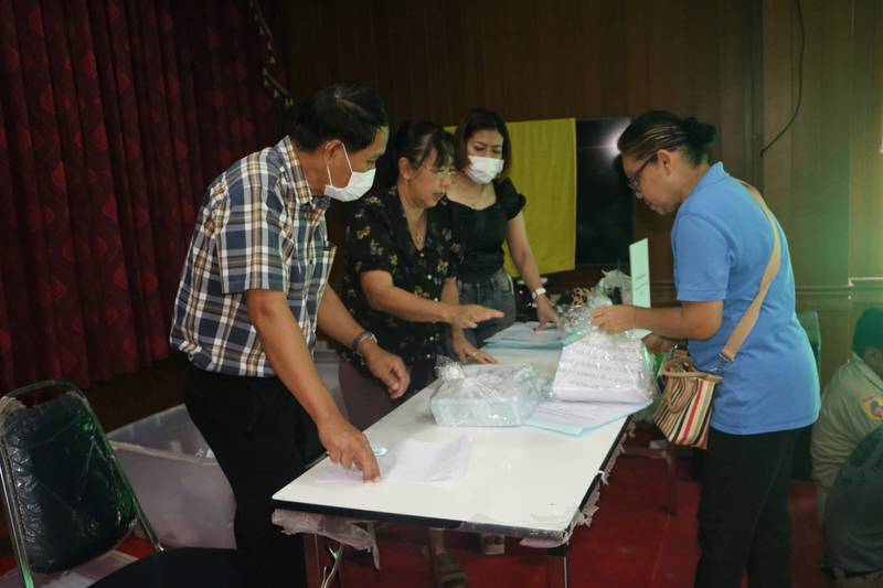 ส่งมอบหีบบัตรเลือกตั้ง บัตรเลือกตั้ง วัสดุอุปกรณ์ประจำคูหาเลือกตั้ง ให้คณะกรรมการประจำหน่วยเลือกตั้ง (กปน.) ในการเลือกตั้งสมาชิกสภาเทศบาลเมืองลพบุรี