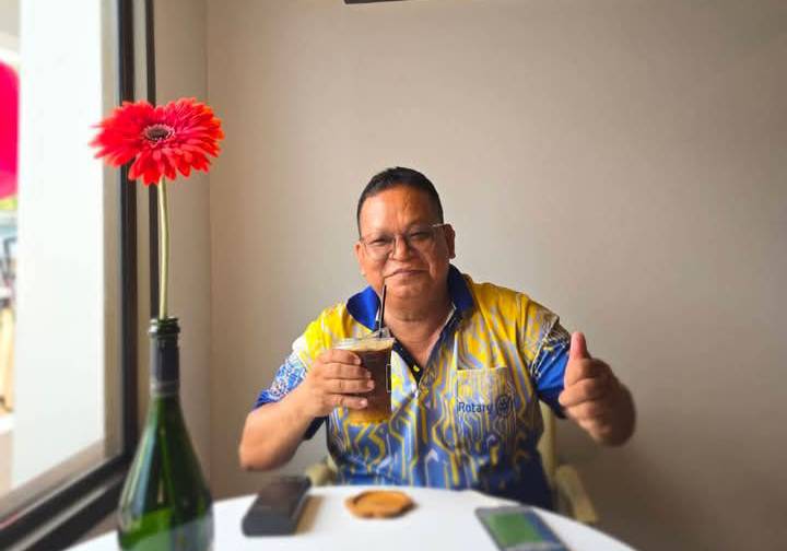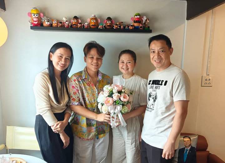 นุชรักษ์ อดีตนายกฯสโมสรโรตารี่พระราเมศวรลพบุรี มอบกระเช้าดอกไม้แสดงความยินดีให้แก่ นายศิริชัย อัมพร