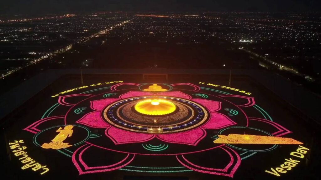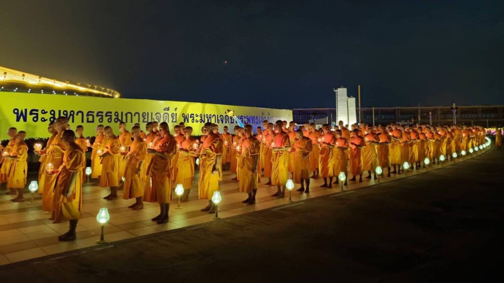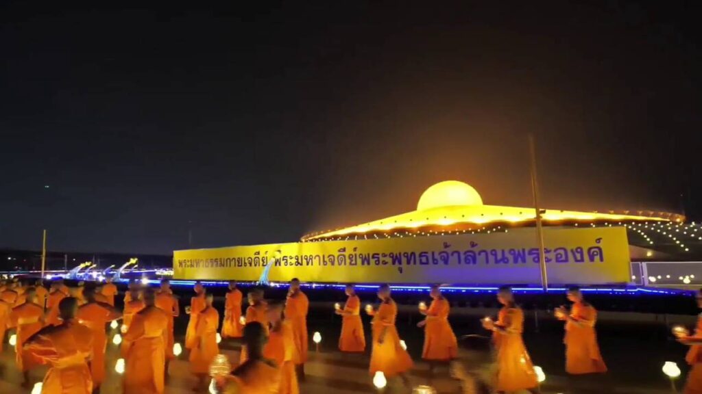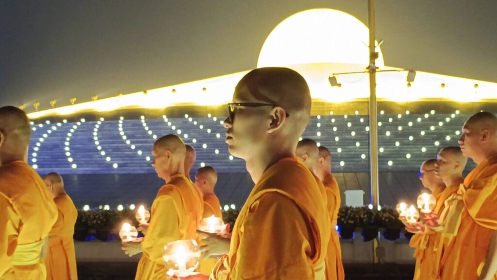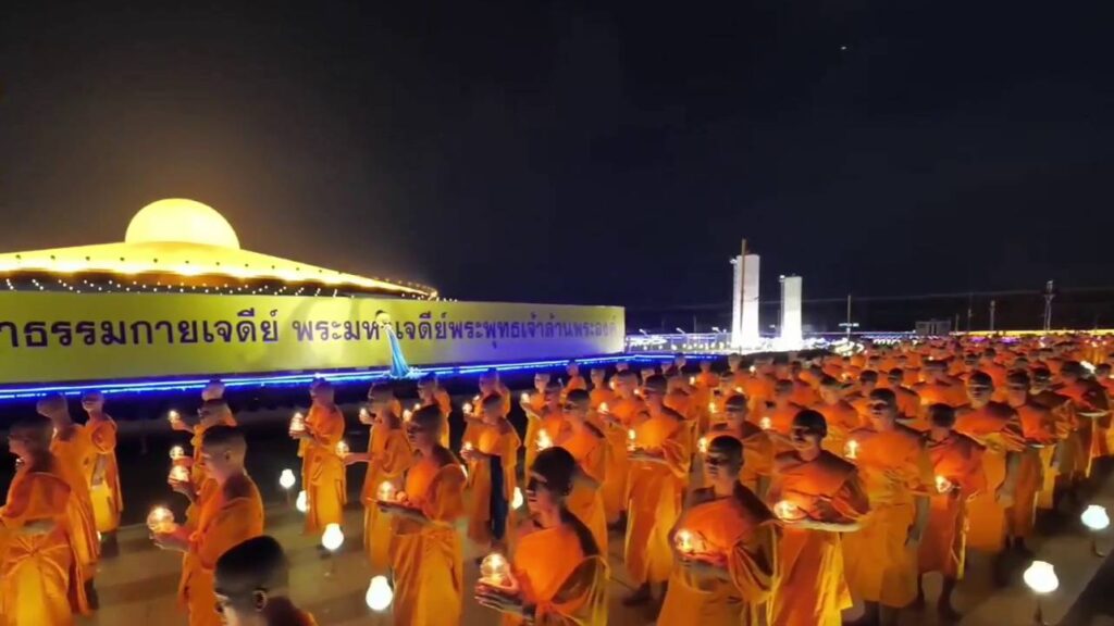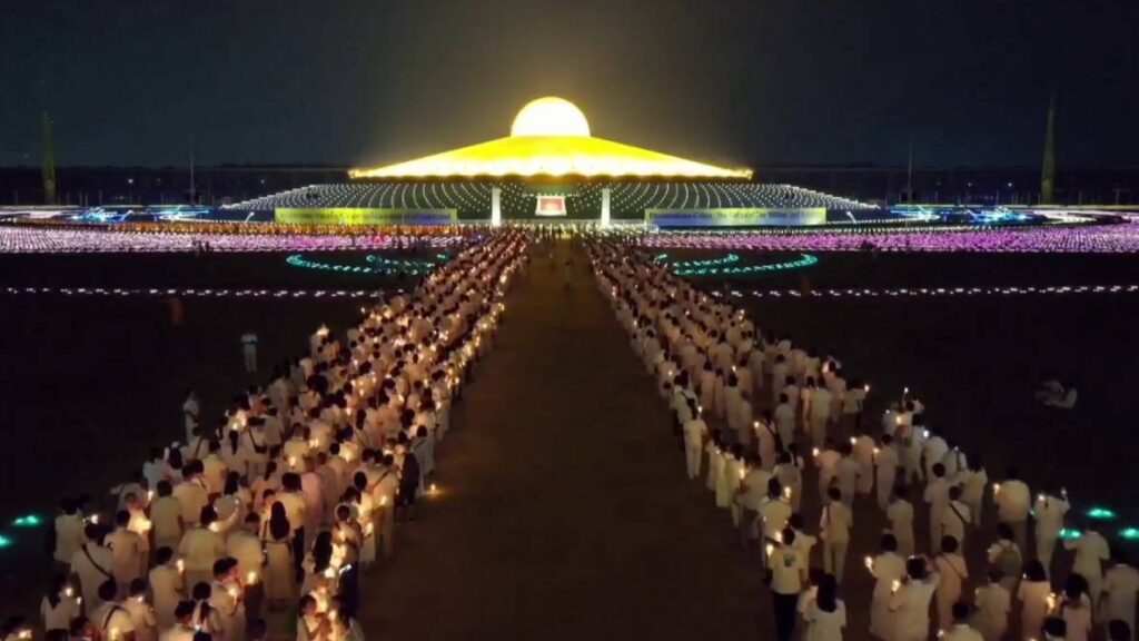 วันที่ 11 พฤษภาคม 2568 ที่วัดพระธรรมกาย ตำบลคลองสาม อำเภอคลองหลวง จังหวัดปทุมธานี พุทธศาสนิกชนร่วมจุดวิสาขประทีป และเวียนประทักษิณรอบพระมหาธรรมกายเจดีย์ เพื่อเป็นพุทธบูชาในวันวิสาขบูชา ซึ่งเป็นวันประสูติ ตรัสรู้ และปรินิพพานขององค์พระสัมมาสัมพุทธเจ้า เป็นวันสำคัญทางศาสนาให้เหล่าพุทธบริษัทได้ใคร่ครวญธรรมะที่ลึกซึ้ง เข้าใจได้ และใช้ได้กับทุกคน