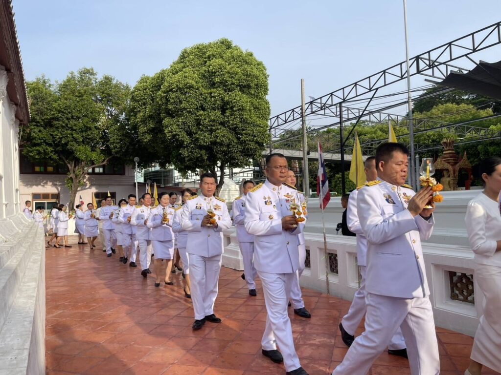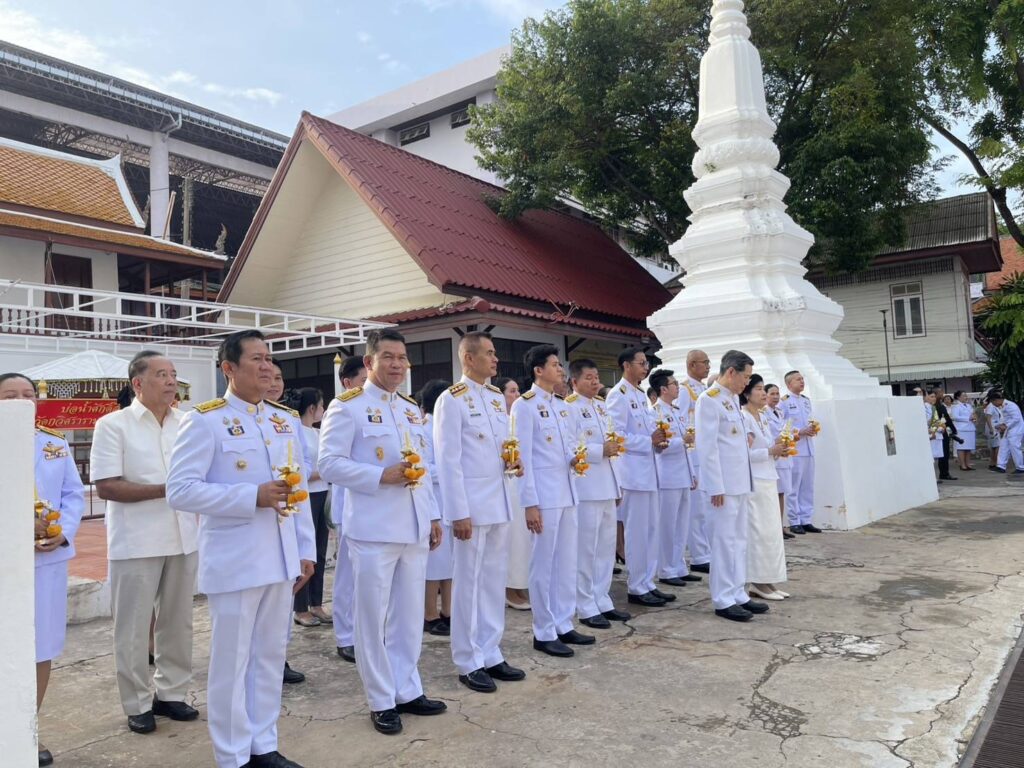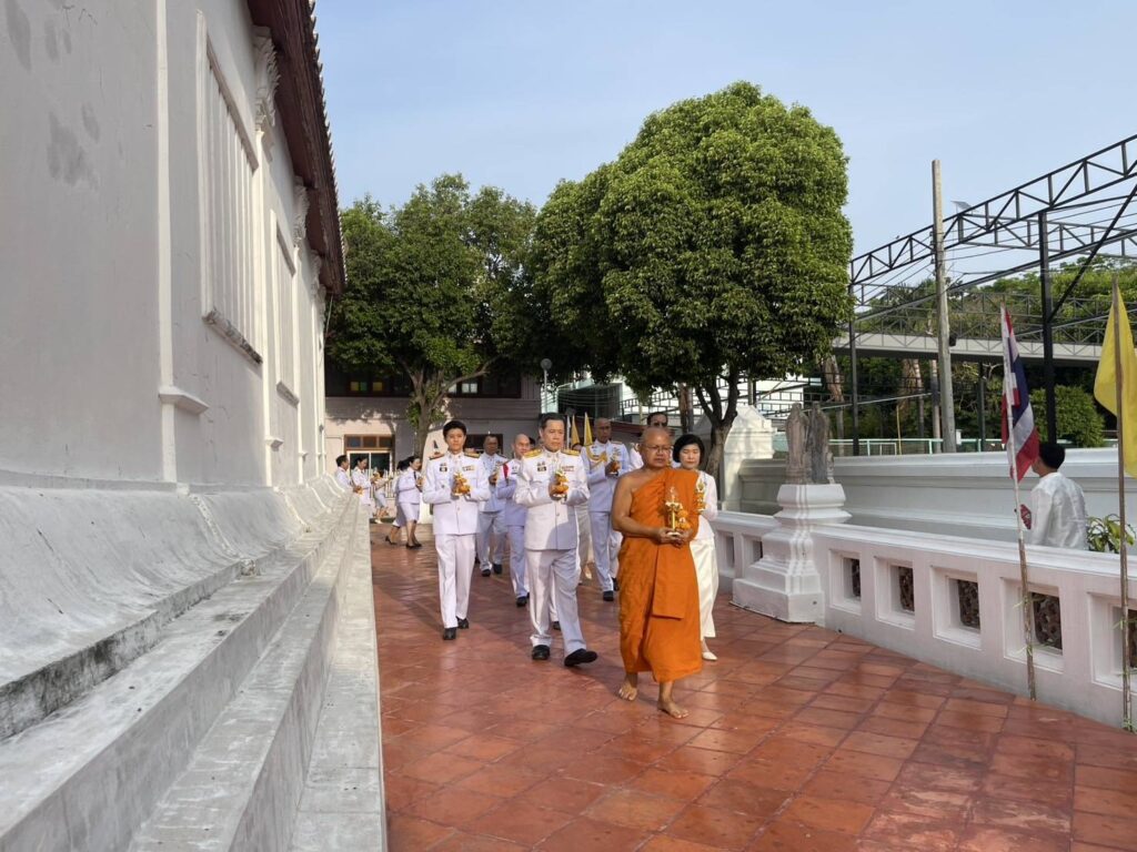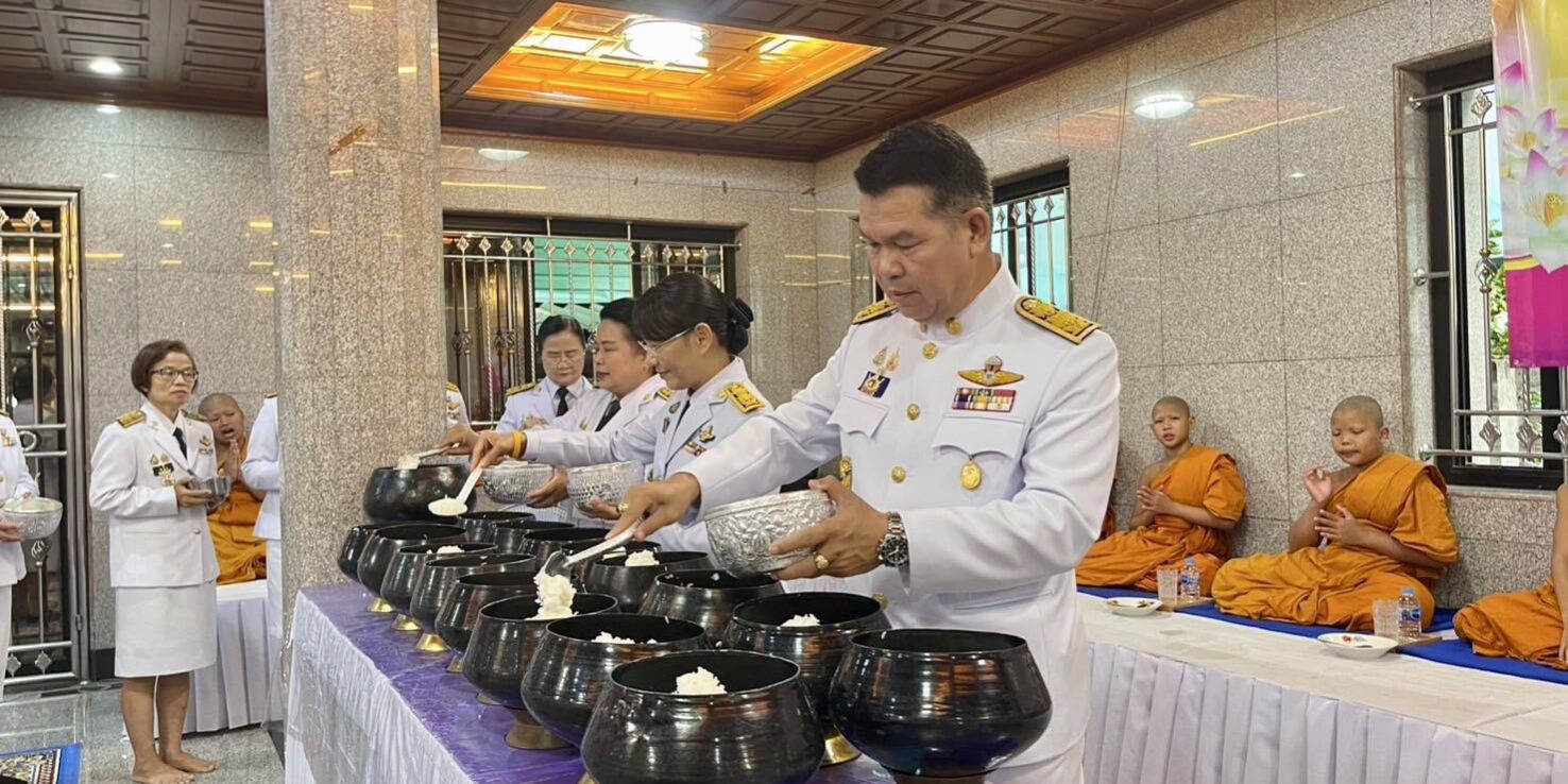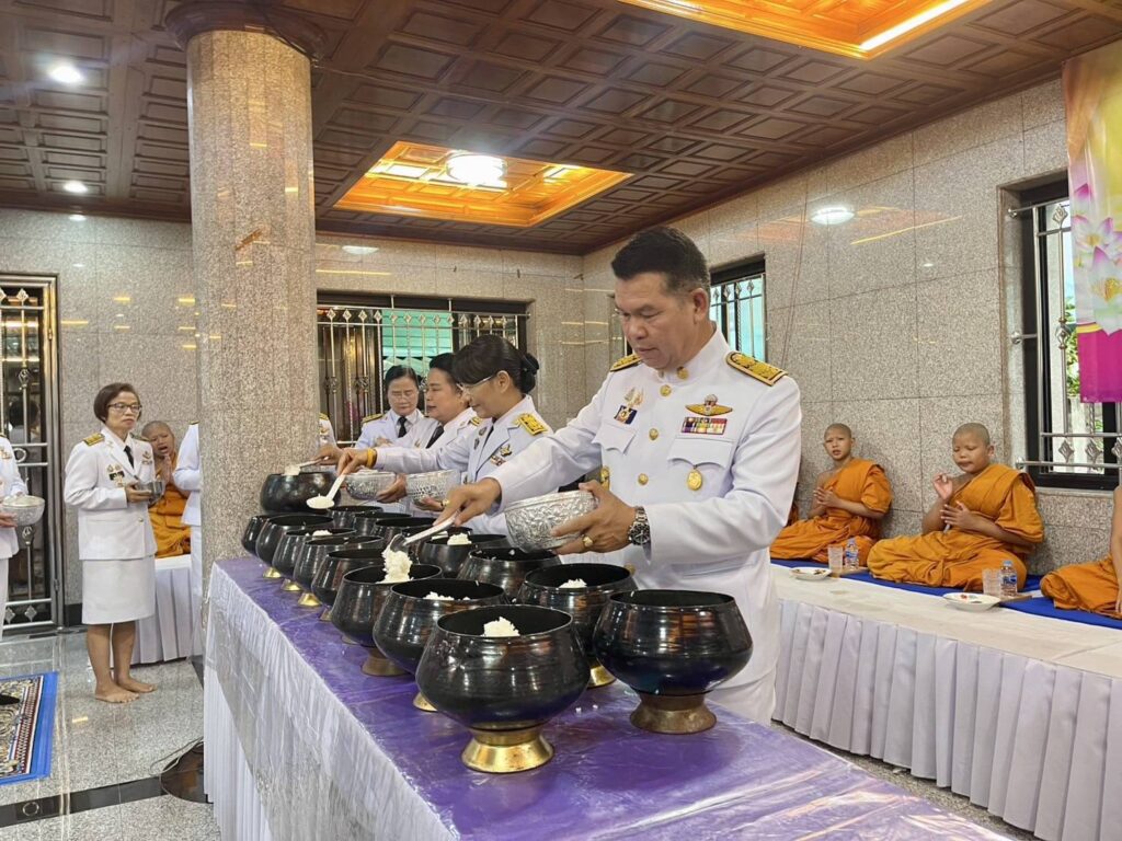 ในพิธีทำบุญตักบาตรและเวียนเทียน เนื่องในวัน“วันวิสาขบูชา”ถวายเป็นพุทธบูชาแด่องค์พระสัมมาสัมพุทธเจ้า ประจำปีพุทธศักราช 2568 โดยมี