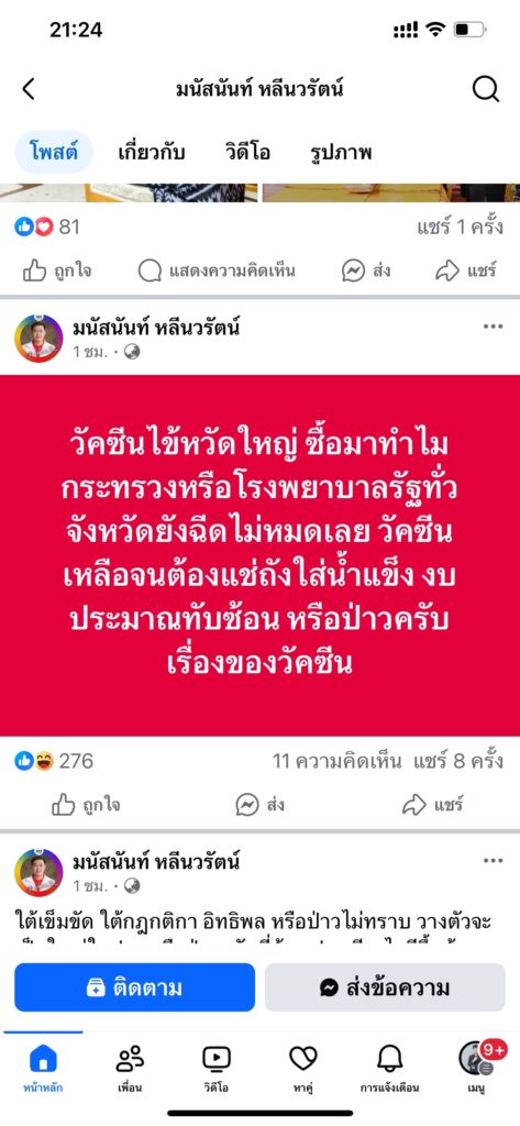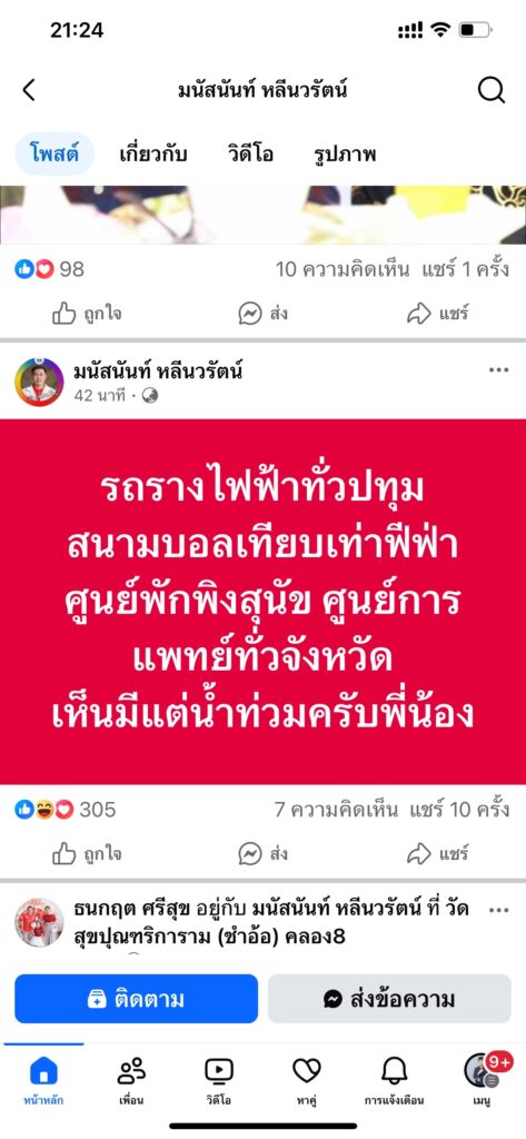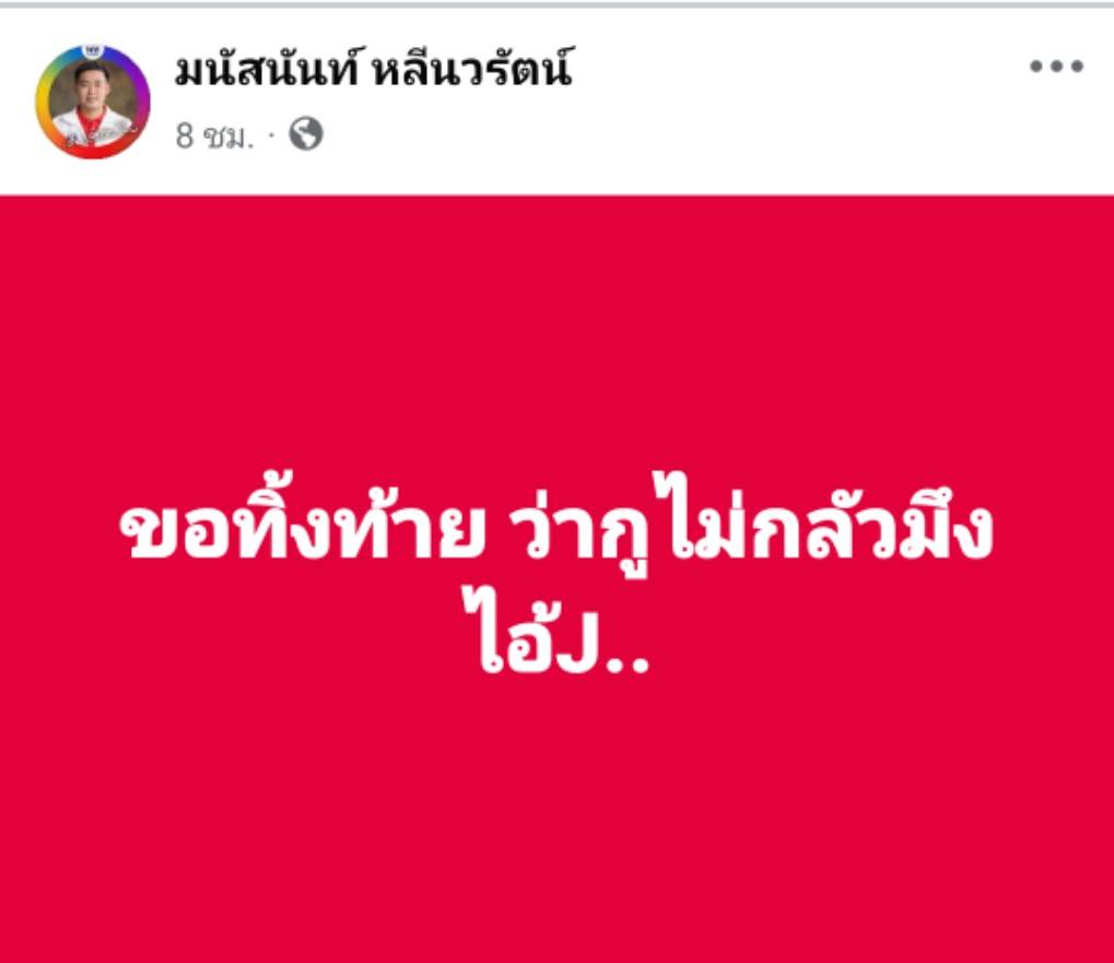 เมื่อเวลา 12.00 น. วันที่ 13 พฤษภาคม 2568 ที่ห้องทำงาน นายกองค์การบริหารส่วนจังหวัดปทุมธานี พลตำรวจโท คำรณวิทย์ ธูปกระจ่าง นายกองค์การบริหารส่วนจังหวัดปทุมธานี ได้เปิดใจกับทีมข่าวถึงเรื่องประเด็น ที่มี ส.ส.พรรคใหญ่ ในพื้นที่ ปทุมธานี นายมนัสนันท์ หลีนวรัตน์ หรือ ฟลุ๊ค ส.ส.ปทุมธานี เขต 5 พรรคเพื่อไทย ลูกชายนายกฤษดา ได้เคลื่อนไหวทางเพจเฟซบุ๊ก มนัสนันท์ หลีนวรัตน์ ตลอดวันที่ 12 พฤษภาคมที่ผ่านมา โดยการโพสข้อความลงเฟสบุ๊คส่วนตัว ซึ่งบางโพสต์มีความเกี่ยวข้องกับ การจะฉีดวัคซีนไข้หวัดใหญ่ และ บางโพสต์ได้ ท้าทายว่าไม่กลัวบุคคล อักษร เจ (J)