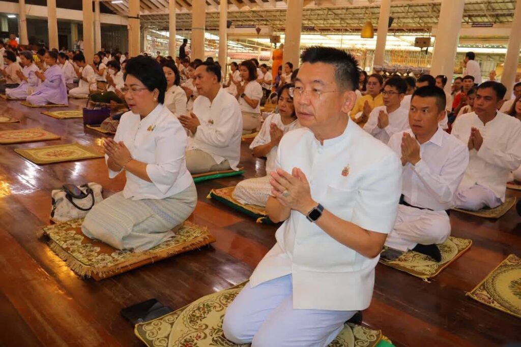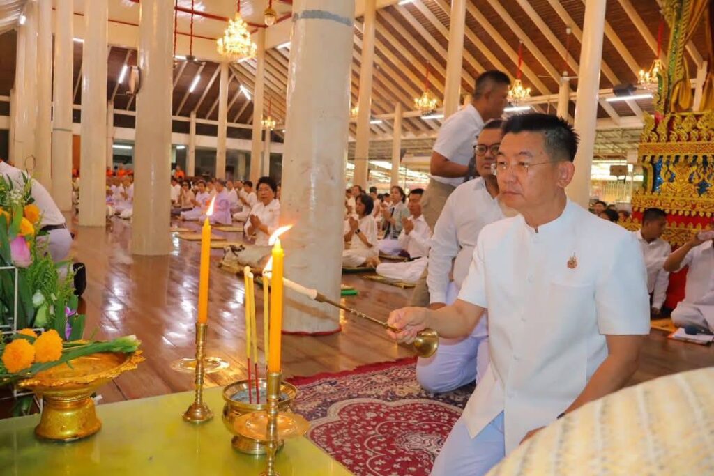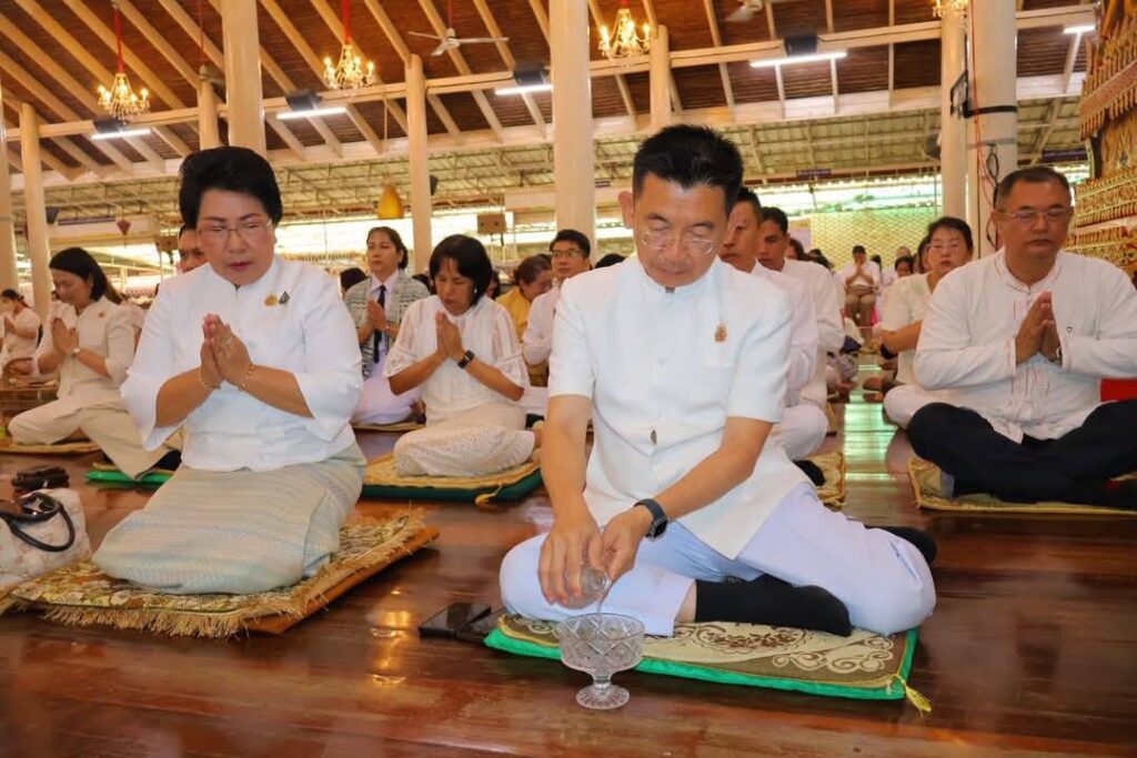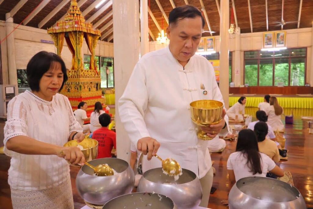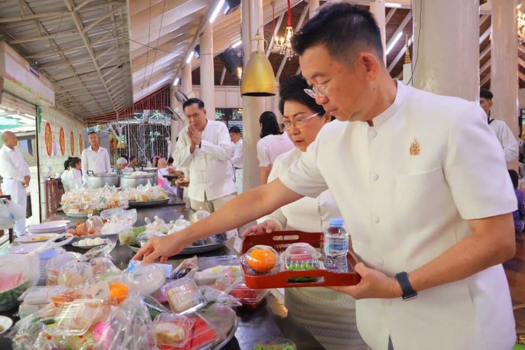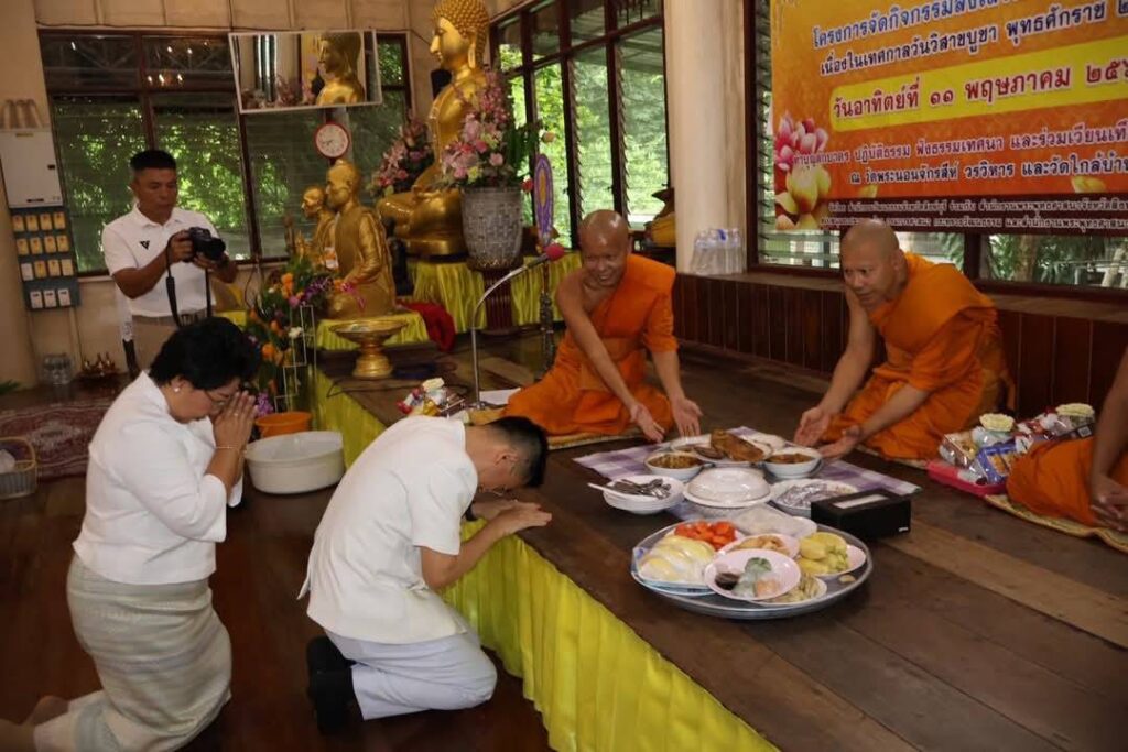 วันที่ 11 พฤษภาคม 2568 เวลา 07.00 น. นายสุเมธ ธีรนิติ ผู้ว่าราชการจังหวัดสิงห์บุรี เป็นประธานในพิธีทำบุญตักบาตรเนื่องในวันวิสาขบูชา โดยมี นางวาสนา ธีรนิติ นายกเหล่ากาชาดจังหวัดสิงห์บุรี นายวราดิศร อ่อนนุช รองผู้ว่าราชการจังหวัดสิงห์บุรี นางสาววีรวรรณ จันทนเสวี รองผู้ว่าราชการจังหวัดสิงห์บุรี/รองนายกเหล่ากาชาดจังหวัดสิงห์บุรี นายอำเภอ หัวหน้าส่วนราชการ เจ้าที่ภาครัฐและเอกชน และประชาชน ร่วมกันทำบุญตักบาตรแด่พระภิกษุสงฆ์ สามเณร ณ บริเวณศาลาการเปรียญ วัดพระนอนจักรสีห์ วรวิหาร อำเภอเมืองสิงห์บุรี จังหวัดสิงห์บุรี