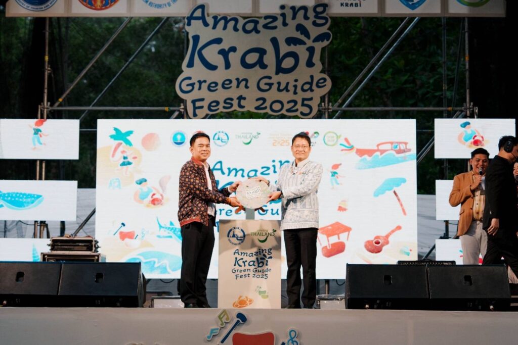 วันที่ 15 พฤษภาคม 2568 นายอังกูร ศีลาเทวากูล ผู้ว่าราชการจังหวัดกระบี่ และนายอัครวิชย์ เทพาสิต ผู้อำนวยการฝ่ายส่งเสริมการลงทุนอุตสาหกรรมท่องเที่ยว การท่องเที่ยวแห่งประเทศไทย (ททท.) ร่วมพิธีเปิดงาน “Amazing Krabi Green Guide Fest 2025” เทศกาลท่องเที่ยวเชิงอนุรักษ์ ซึ่งมีกำหนดจัดขึ้นในวันที่ 15 – 18 พฤษภาคม 2568 ณ อุทยานแห่งชาติหาดนพรัตน์ธารา–หมู่เกาะพีพี จังหวัดกระบี่ โดย การท่องเที่ยวแห่งประเทศไทย (ททท.) ร่วมกับจังหวัดกระบี่ และพันธมิตรทั้งภาครัฐและเอกชน ชูแนวคิด Green Vibes และ Eco-Friendly Event เพื่อมุ่งยกระดับจังหวัดกระบี่สู่การเป็นพื้นที่ต้นแบบจุดหมายปลายทางสีเขียวอย่างยั่งยืนในระดับสากล และสร้างแรงบันดาลใจให้นักท่องเที่ยวร่วมขับเคลื่อนกระบี่สู่ “อนาคตแห่งการท่องเที่ยวอย่างยั่งยืน” คาดสร้างรายได้หมุนเวียนไม่น้อยกว่า 35 ล้านบาท