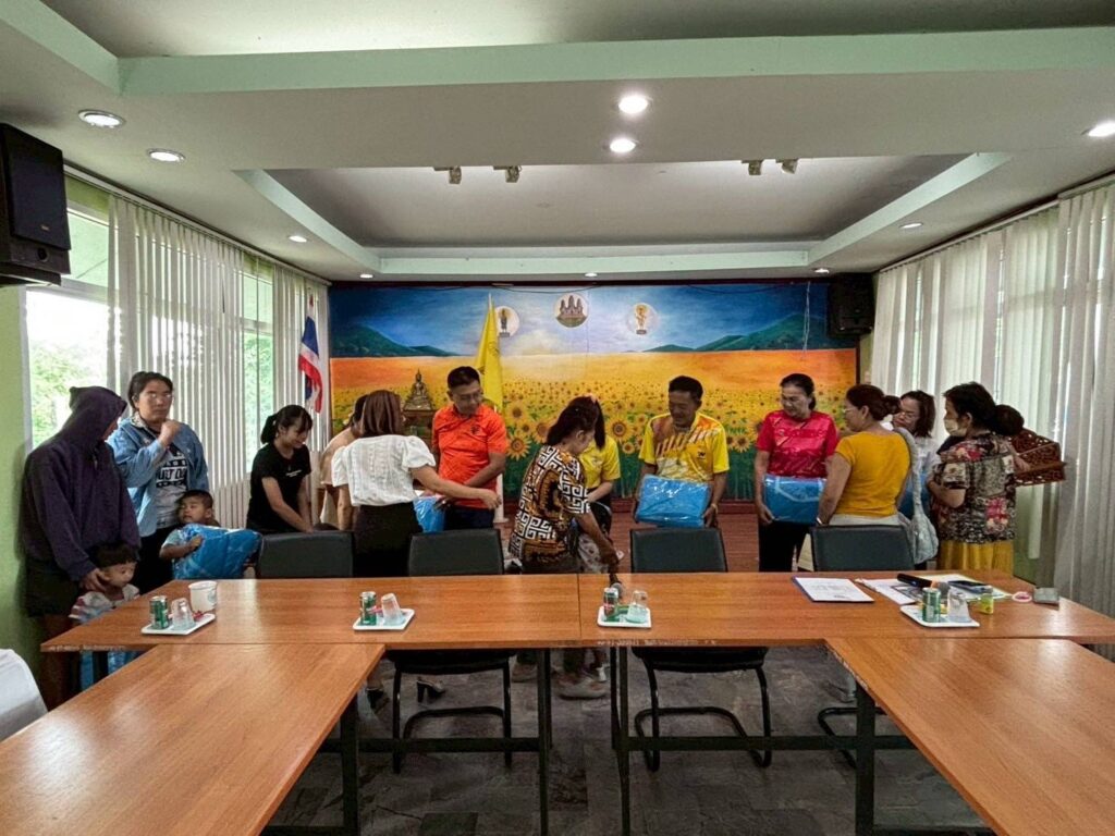 ณ ห้องประชุมองค์การบริหารส่วนตำบลหนองทรายขาว อำเภอบ้านหมี่ จังหวัดลพบุรี และมอบของใช้ส่วนตัวให้กับเด็กของศูนย์พัฒนาเด็กเล็ก