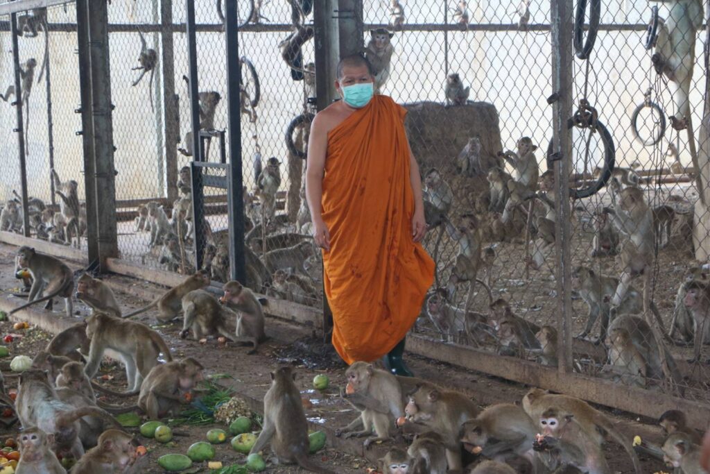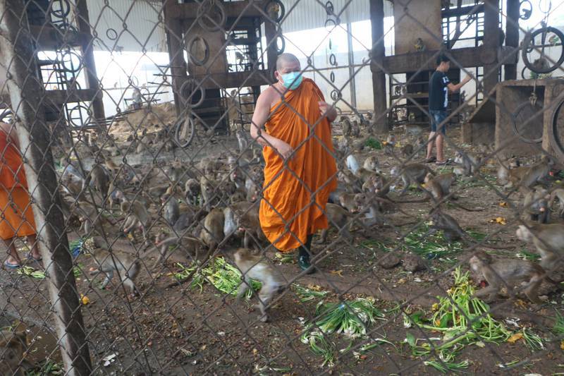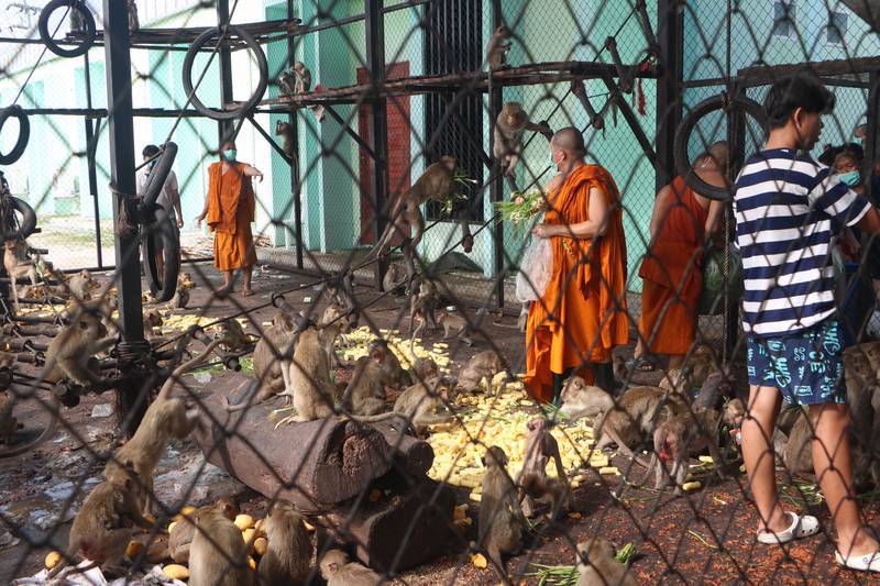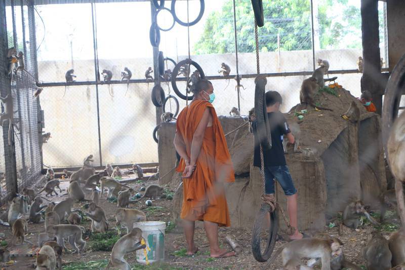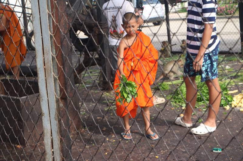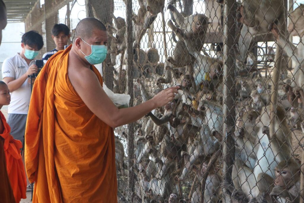 นำอาหาร เช่นผลไม้ ผัก มาจากการท่อผ้าป่าอาหารลิงทุกวันเสาร์ นำมาเลี้ยงลิง