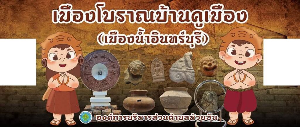 ”เมืองโบราณบ้านคูเมือง“ ตั้งอยู่ที่อำเภออินทร์บุรี จังหวัดสิงห์บุรี สันนิษฐานว่าในอดีตเป็นชุมชนโบราณสมัยทวารวดี ผังเมืองเป็นรูปสี่เหลี่ยมมุมมน เนินดินขนาดใหญ่ มีคูน้ำ คันดินล้อมรอบ มีการขุดค้นพบภาชนะดินเผามากมาย เช่น เครื่องถ้วยชาม หม้อ ไห กาน้ำ ลูกปัดหินสีต่างๆ ตะคันดินเผา ธรรมจักรหินเขียว ตุ้มหู ลูกปัด หินสี และเหรียญเงินมีคำจารึกว่า “ศรีทวารวดีศวร ปุญยะ” แสดงให้เห็นว่ามีชุมชนอาศัยอยู่ในบริเวณ นี้ติดต่อกันมาตั้งแต่สมัยฟูนันจนถึงรัตนโกสินทร์