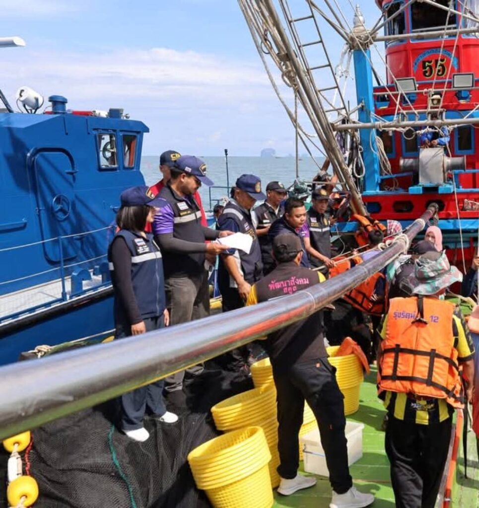 วันนี้ 23 ม.ค. 68 นายศักระ กปิลกาญจน์ ผู้ว่าราชการจังหวัดสตูล มอบหมายให้ นายคณิต คงช่วย รองผู้ว่าราชการจังหวัดสตูล เป็นประธานปล่อยแถวบูรณาการตรวจคุ้มครองแรงงานในเรือประมงทะเลตามแผนปฏิบัติงานการตรวจฯ ซึ่งตรวจคุ้มครองแรงงานในเรือประมงทะเล ตรวจสภาพการจ้าง สภาพการทำงาน การใช้แรงงานต่างด้าว การค้ามนุษย์ พร้อมด้วย นายสุขเกษม ศรีงาม หัวหน้าหน่วยป้องกันและปราบปรามประมงทะเลเกาะหลีเป๊ะ (สตูล) และหน่วยงานที่เกี่ยวข้อง ร่วมลงพื้นที่ฯ โดยได้รับการสนับสนุนเรือในการออกตรวจทางทะเลจากหน่วยป้องกันและปราบปรามประมงทะเลเกาะหลีเป๊ะ (สตูล) ณ บริเวณร่องน้ำปากบารา อำเภอละงู จังหวัดสตูล