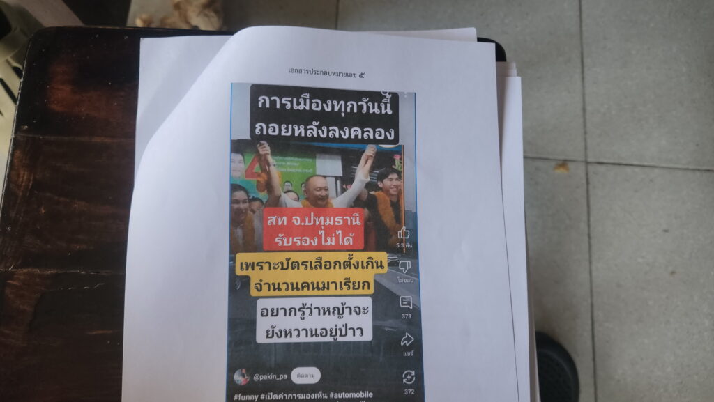 ซึ่งมีแหล่งข่าวกล่าวว่ามีประชาชนจากธัญญะติดต่อมาเพื่อขอนำหลักฐานการกระทำผิดการเลือกตั้งเพื่อมามอบให้กับ กกต. เพิ่งจะนำมามอบภายในอาทิตย์นี้