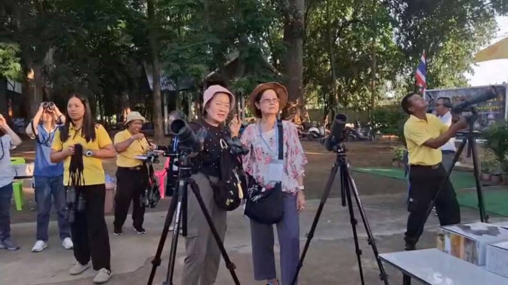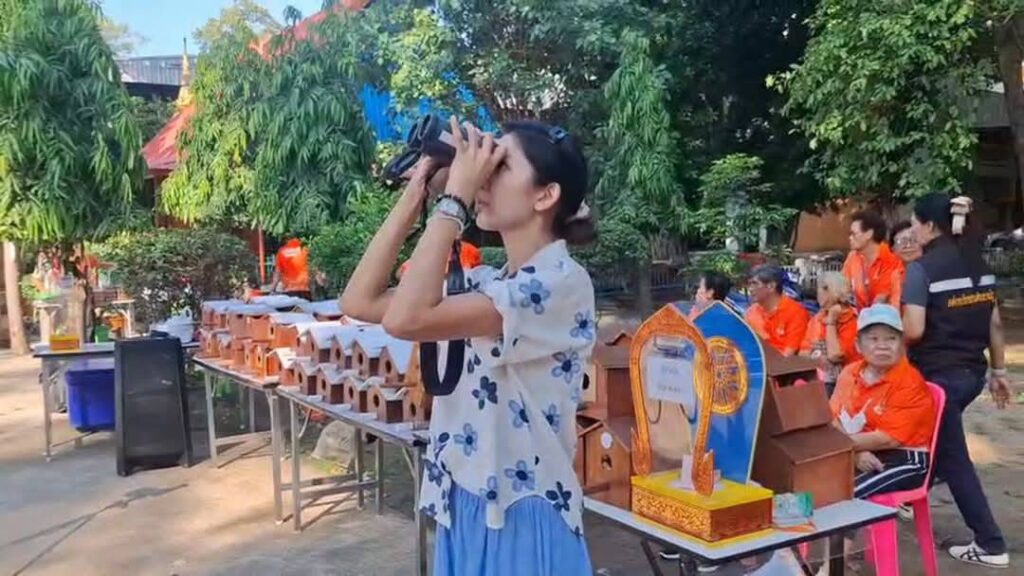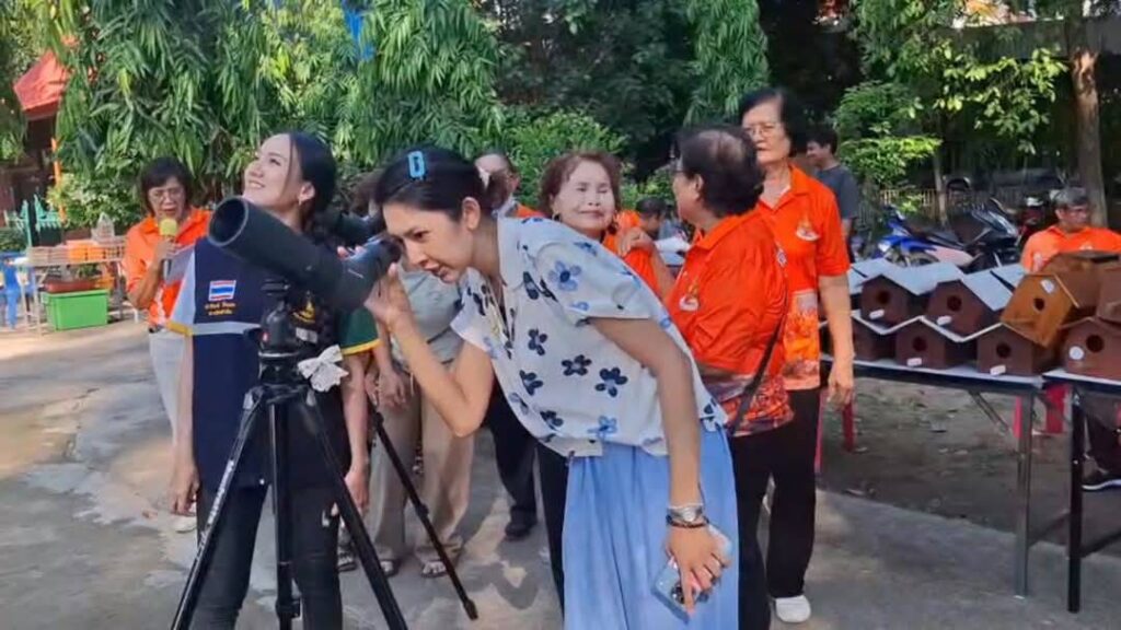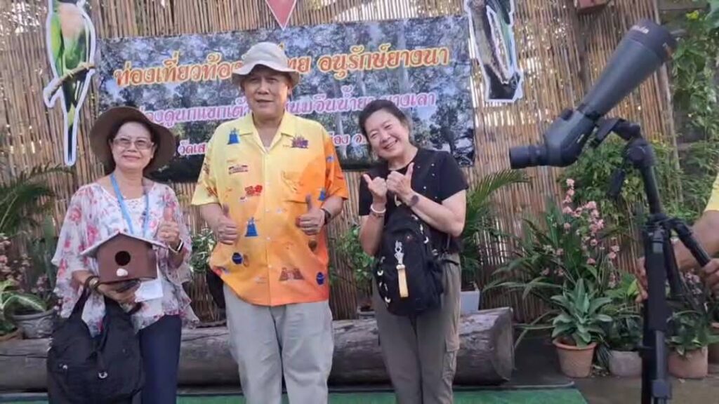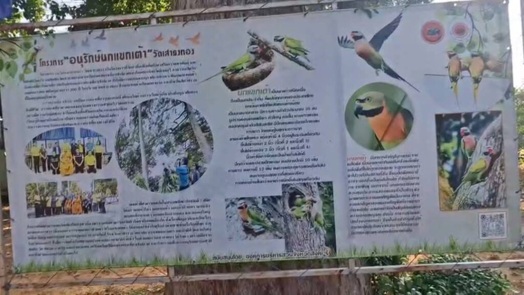 นายวราดิศร อ่อนนุช รองผู้ว่าราชการจังหวัดสิงห์บุรีพร้อมนายกันตพงษ์ ธนเมืองโรจน์ นายกสมาคมส่งเสริมธุรกิจท่องเที่ยวไทย สถานีวิจัยสัตว์ป่าบึงบอระเพ็ด จังหวัดนครสวรรค์ นายกองค์การบริหารส่วนตำบลบางมัญ กำนัน ผู้ใหญ่บ้านและประชาชนตำบลบางมัญ ต้อนรับนักท่องเที่ยวกว่า 30 คน ส่องดูนกแขกเต้า บริเวณต้นยางยักษ์อายุกว่า 300 ปี แหล่งท่องเที่ยวเชิงนิเวศแห่งใหม่ในจังหวัดสิงห์บุรี ณ วัดเสาธงทอง ตำบลบางมัญ อำเภอเมืองจังหวัดสิงห์บุรี โดยนักท่องเที่ยวเดินทางมาส่องนกแขกเต้าเป็นสัตว์คุ้มครองตาม พรบ.คุ้มครองสัตว์ป่า พ.ศ.2535 ที่หาชมได้ยากแล้ว อาศัยอยู่ในโพรงต้นยางนาที่เก่าแก่