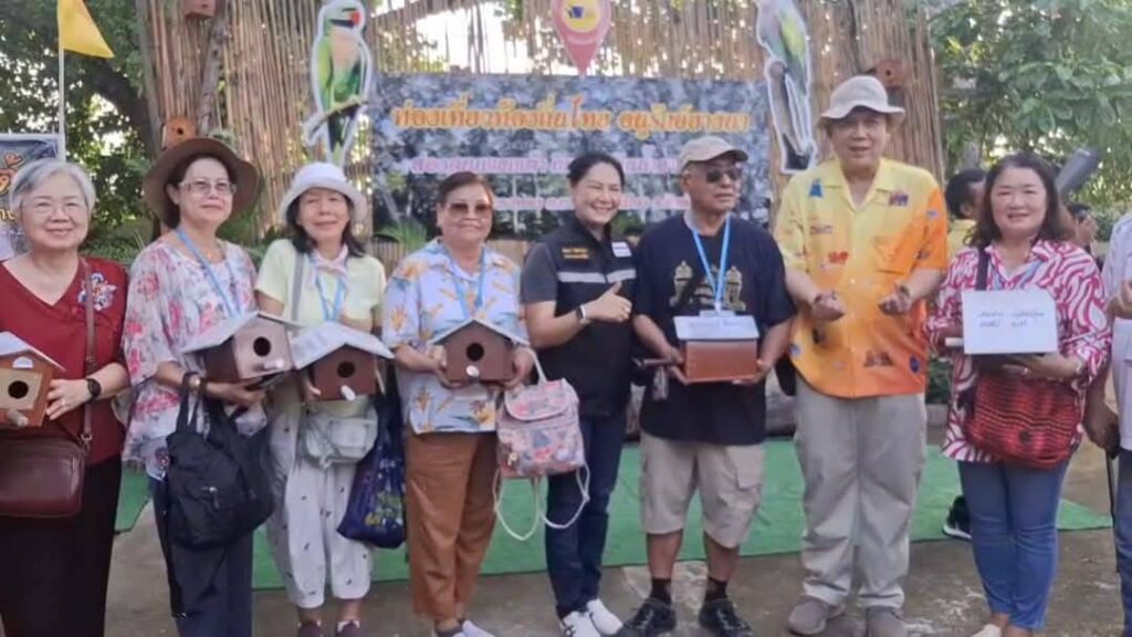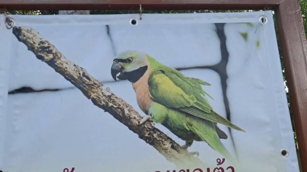 เนื่องจากธรรมชาติแถวทุ่งนาเริ่มมีต้นไม้น้อยลงจึงเปลี่ยนถิ่นฐานมาอาศัยอยู่ต้นยางนาเพื่อสืบพันธุ์กัน นกชอบกินพืชผักผลไม้ ช่วงเช้าจะออกหากินนำอาหารกลับมาป้อนลูกช่วงเย็นที่ยังบินออกหากินเองไม่ได้อาศัยอยู่บนต้นยางให้นักท่องเที่ยวได้ส่องดูความสวยงามของนกแขกเต้า ที่มีขนสวยสีเขียวสด อกสีชมพูอ่อนหัวสีเทาอมฟ้าและมีแถบเคราสีดำเพศผู้มีปากบนสีแดงสด ส่งเสียงร้องแหลมสูง นักท่องเที่ยวได้มาทำกิจกรรมทำบุญซื้อบ้านให้นก ชม ชิม ช้อป สินค้าโอท้อป กินขนมจีนน้ำยาบางเลาให้อาหารม้าแคระ เพื่ออนุรักษ์สัตว์สงวนใกล้สูญพันธุ์ นกแขกเต้าเป็นแหล่งท่องเที่ยวเชิงนิเวศแห่งใหม่สร้างรายได้ให้ชุมชน