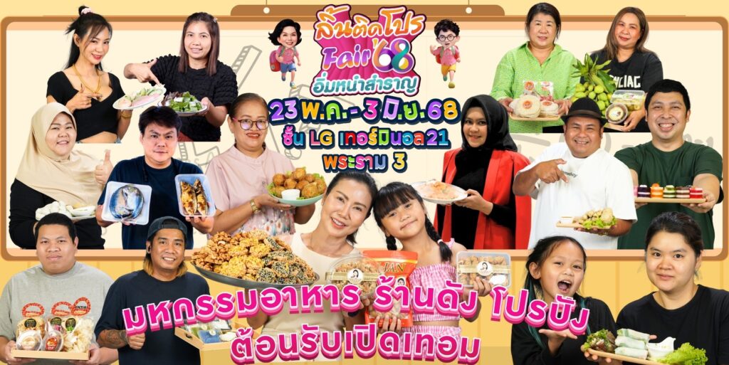 ต้อนรับเปิดเทอม กับของอร่อยที่หลากหลาย ชวนครอบครัว พาลูกหลาน มาเดินชิล กินของอร่อย ในงาน ลิ้นติดโปรแฟร์ ’68 มหกรรมอาหารจัดใหญ่ ที่ขนร้านเด็ดร้านดัง และโปรปังๆ มาเสิร์ฟกันแบบจุใจ ตามสไตล์ของคู่ซี้สายกิน “ก้อง ปิยะ เศวตวิมล และ ท็อป ดารณีนุช” อิ่มหนำสำราญ ตลอด 12 วันเต็ม แบบจุกๆกัน ตั้งแต่วันที่ 23 พฤษภาคม - 3 มิถุนายน 68 นี้ ณ ชั้น LG เทอร์มินอล21 พระราม 3 เพราะเรื่องความอร่อยคืองานของเรา