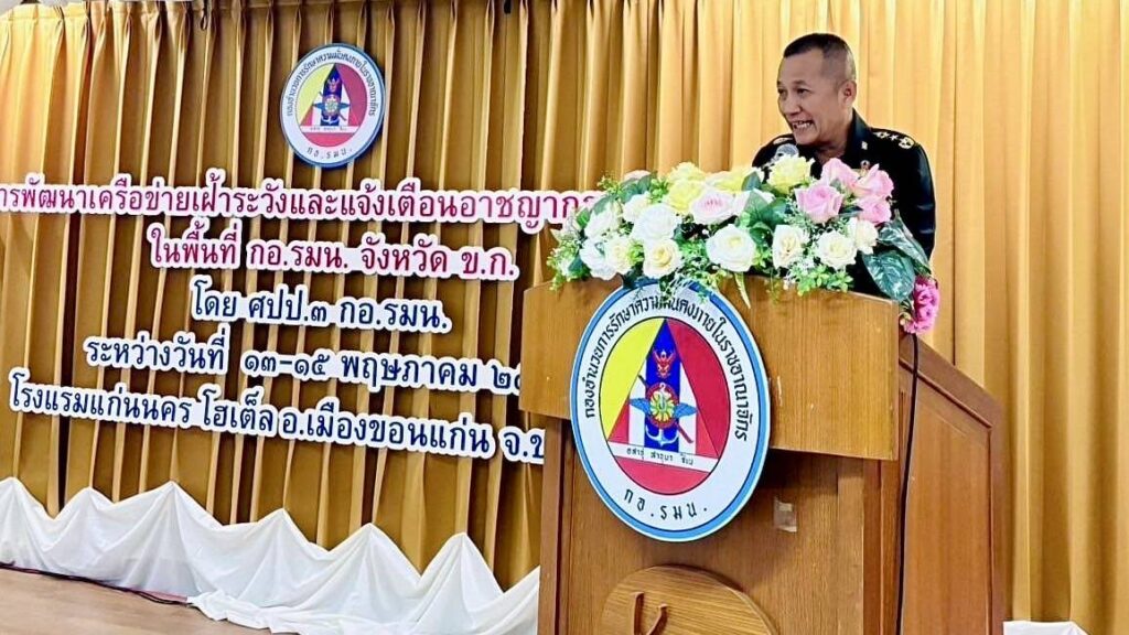 เมื่อวันที่ 15 พฤษภาคม 2568 ที่โรงแรมแก่นนคร โฮเต็ล อำเภอเมือง จังหวัดขอนแก่น พลโท ชนินทร์ สิงหนาทนิติรักษ์ ผู้อำนวยการศูนย์ประสานการปฏิบัติที่ 3 กองอำนวยการรักษาความมั่นคงภายในราชอาณาจักร (ศปป.3 กอ.รมน.) ได้ให้เกียรติเป็นประธานในพิธีปิดการอบรมพัฒนาเครือข่ายเฝ้าระวังและแจ้งเตือนอาชญากรรมข้ามชาติ ซึ่งจัดขึ้นระหว่างวันที่ 13–15 พฤษภาคมที่ผ่านมา