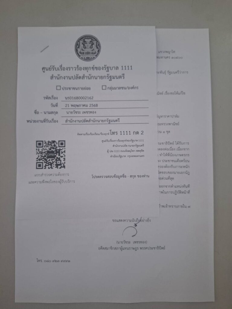 ในตอนท้ายของหนังสือ ยังได้ระบุด้วยว่า หากไม่ได้รับการตอบกลับจากนายกรัฐมนตรีภายใน 7 วัน นายวัชระจะถือว่าเสียงของเกษตรกรไม่ได้รับความสำคัญ และจะดำเนินการเคลื่อนไหวต่อไปเพื่อปกป้องสิทธิของเกษตรกรที่ได้รับความเดือดร้อน