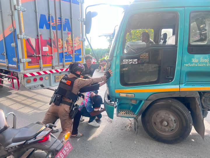 เห็นนายตำรวจ 2 นาย กำลังช่วยเข็นรถบรรทุก6 ล้อ ระบบเครื่องยนต์ขัดข้อง บริเวณหน้าทางเข้าโรงแรม 555 ถนนเทศบาลบ้านหมี่ อ.บ้านหมี่ จ.ลพบุรี เห็นภาพ 2 นายตำรวจ กำลังช่วยเข็นรถ เวลาต่อมาได้ทราบชื่อ 2 ตำรวจที่ช่วยเหลือประชาชน