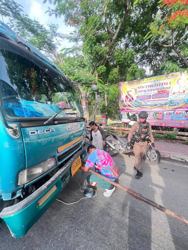 เบื้องต้นได้พ่วงกับรถบรรทุก6ล้อ อีกคัน เพื่อนนำไปซ่อมที่จังหวัดสิงห์บุรีต่อไป