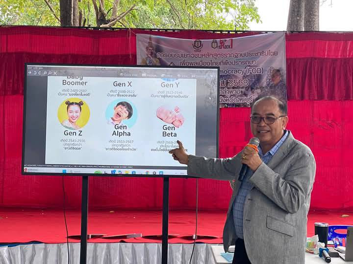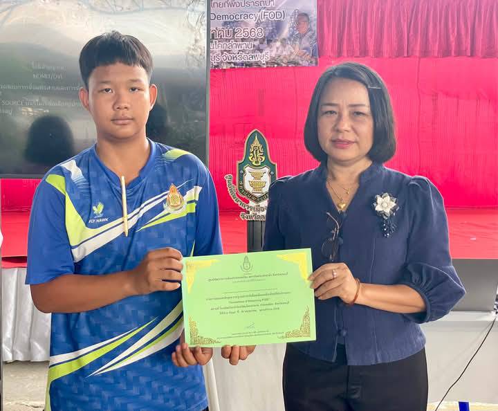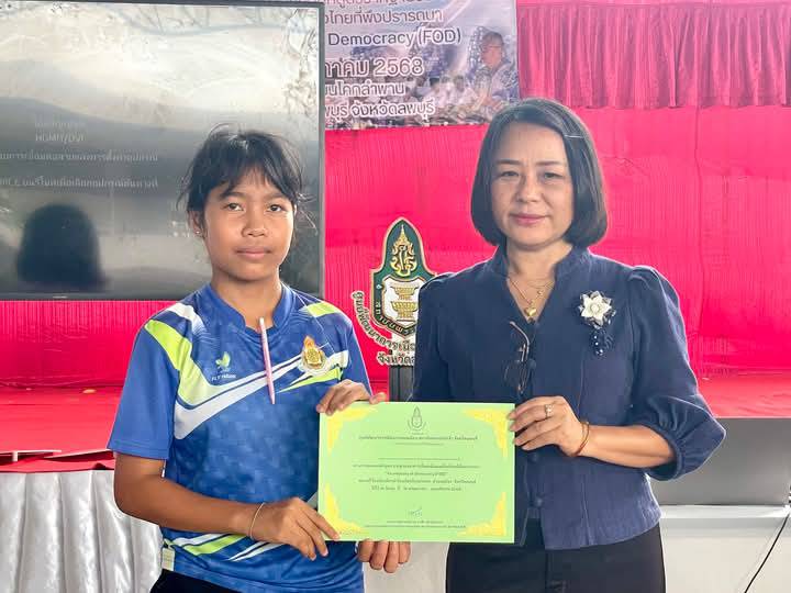 วันพุธที่ 21 พฤษภาคม 2568 เวลา 14.00 น. นางสาวสายสุณี ปั้นพงษ์ เกษตรและสหกรณ์จังหวัดลพบุรี ร่วมเป็นเกียรติในพิธีมอบประกาศนียบัตรให้แก่ผู้เข้ารับการอบรมเยาวชนหลักสูตรรากฐานประชาธิปไตยเพื่อพลเมืองไทย ที่พึงปรารถนา (Foundations of Democracy ( FOD ) ณ โรงเรียนโคกลำพาน อำเภอเมืองลพบุรี จังหวัดลพบุรี หนึ่งในนั้น มี นายนิมิตร์ เทียมมงคล ผู้ก่อตั้ง “ศูนย์ถั่วงอกรักชาติ” เจ้าของสิทธิบัตรภูมิปัญญาการปลูกถั่วงอกตัดราก เป็นพิธีกรในครั้งนี้ด้วย
