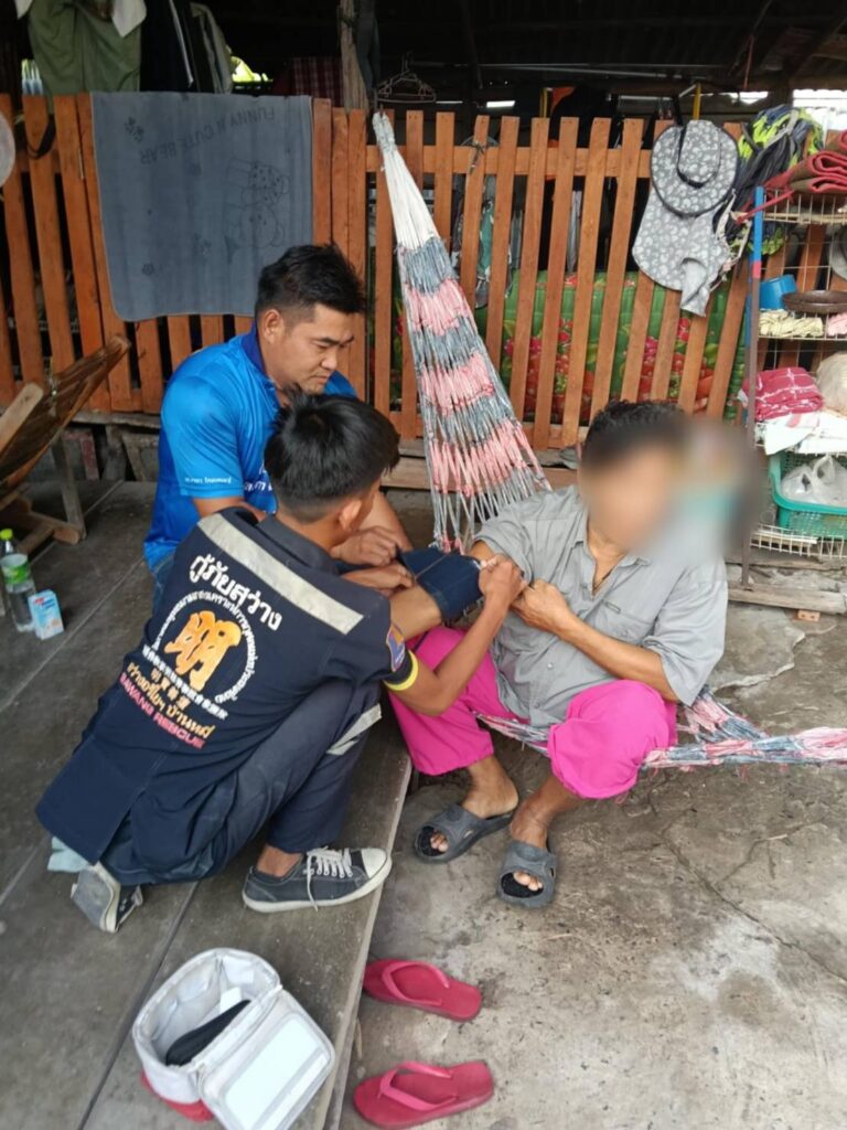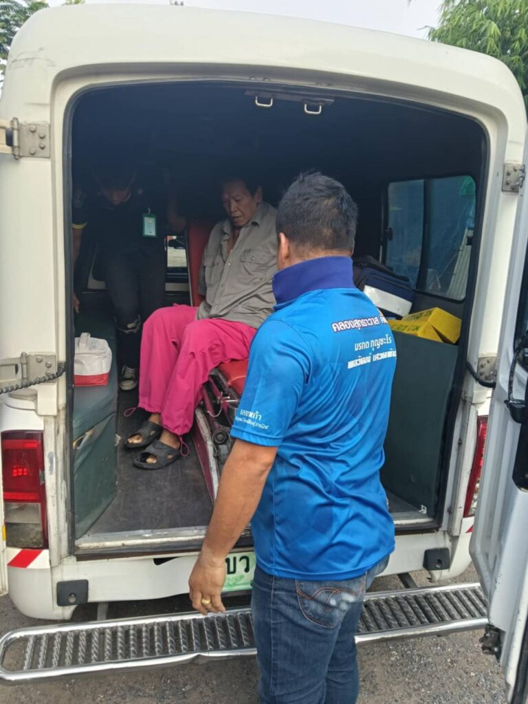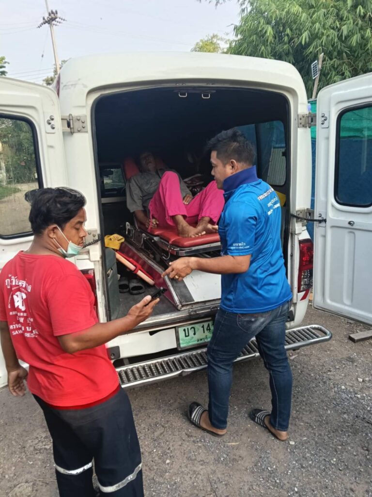 ได้รับแจ้งจากญาติของ “นายสุวิชัย ดวงจอมดี อายุ 64 ปี มีอาการปวดท้องซึ่งมีโรคประจำตัวเป็นโรคตับ, และร่างกายอ่อนเพลียไม่มีแรง” ขอรถรับผู้ป่วย จึงได้มอบหมายให้เลขานุการนายก อบต.หนองทรายขาว ประสานรถหน่วยกู้ภัยสว่างอริโยบ้านหมี่ พร้อมลงพื้นที่หมู่ที่ 2 บ้านมะขามเฒ่า พร้อมได้นำส่ง รพ.บ้านหมี่ เข้าทำการรักษาตัวต่อไป