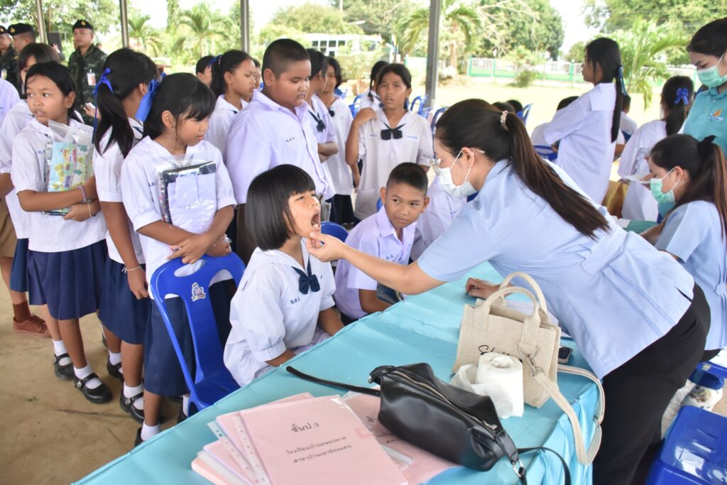 มอบชุดนักเรียนพร้อมปักชื่อ มอบอุปกรณ์เครื่องเขียน จัดให้มีการตรวจสุขภาพ ตรวจสายตา นัดตัดแว่นและลงฟูลออไลน์กันฟันผุ ให้เด็กทุกคนจำนวน 153 คน