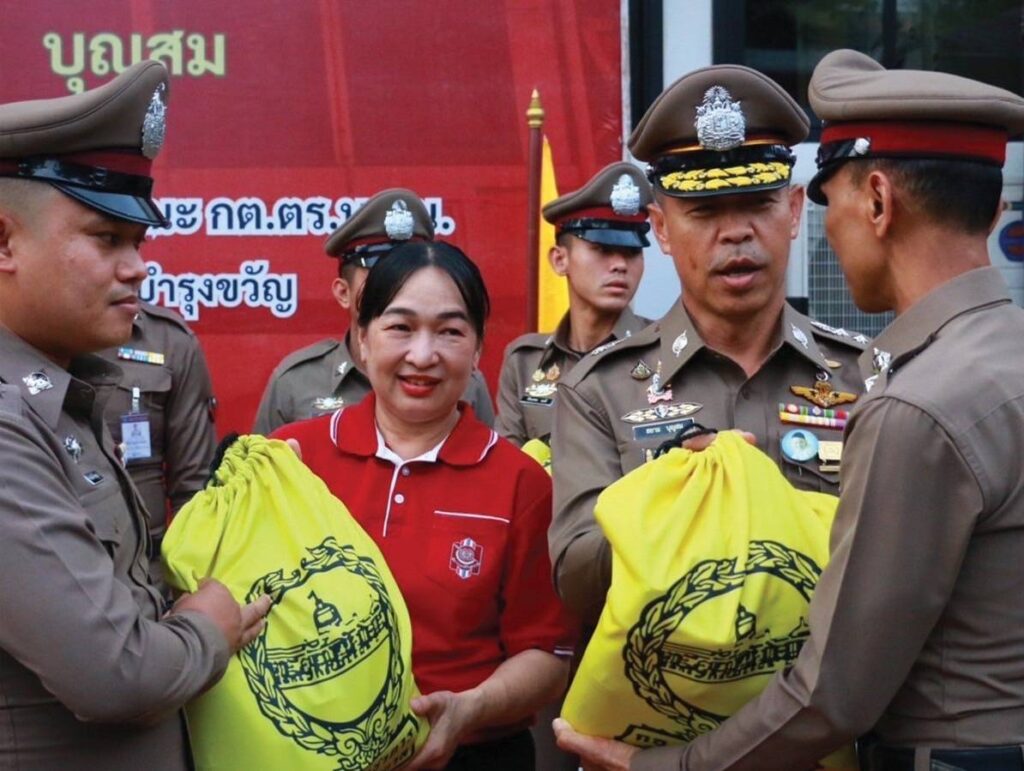เมื่อเวลา 18.30 น. พล.ต.ท.สยาม บุญสม ผบช.น. คุณสมฤทัย บุญสม ประธานชมรมแม่บ้านตำรวจนครบาล พร้อมด้วย