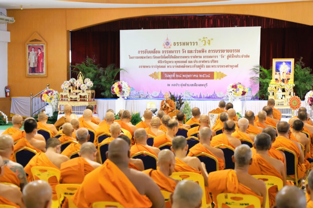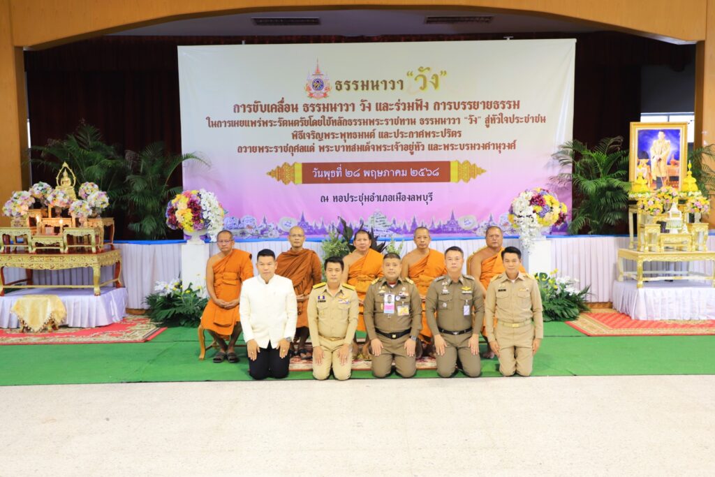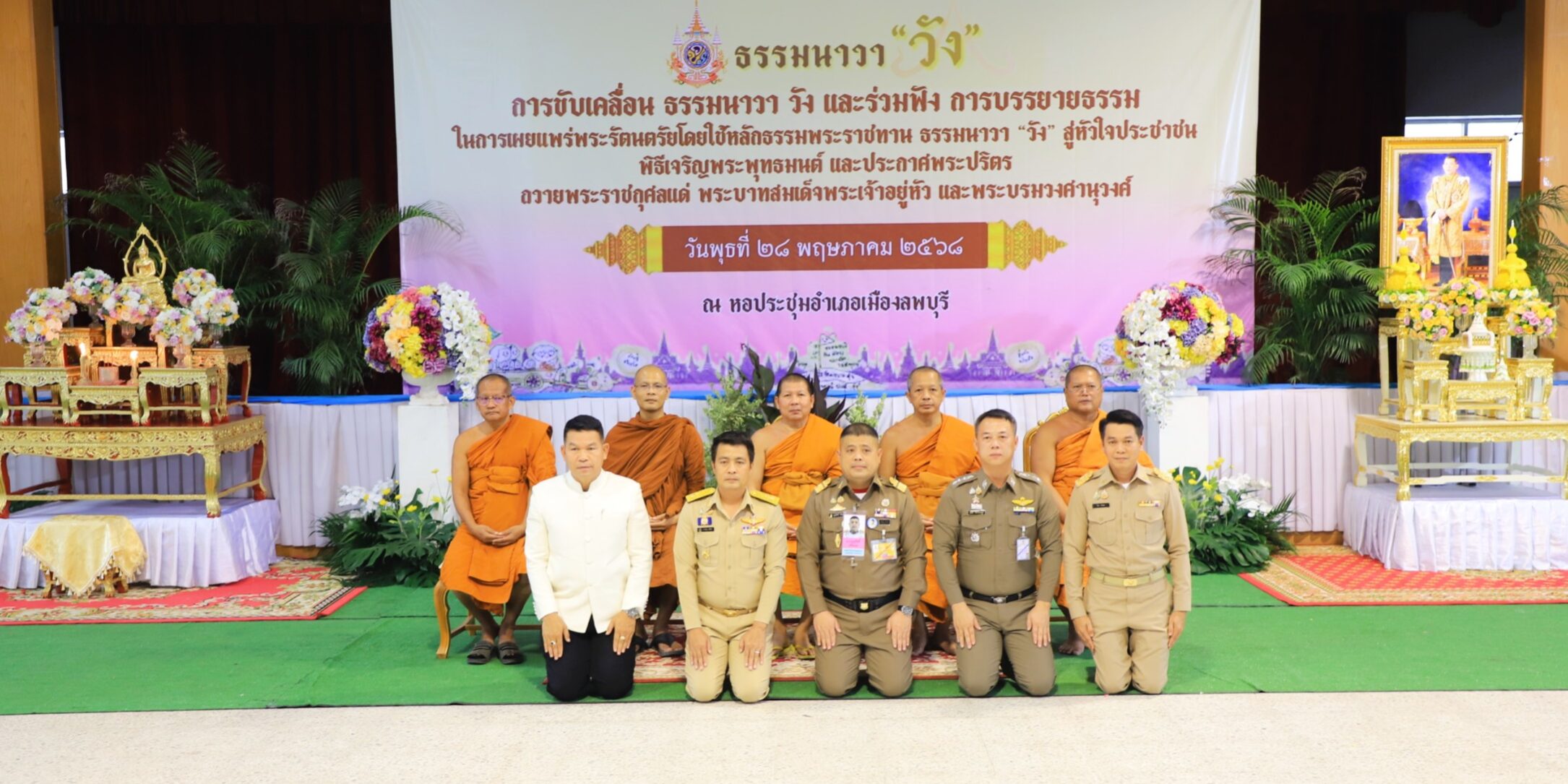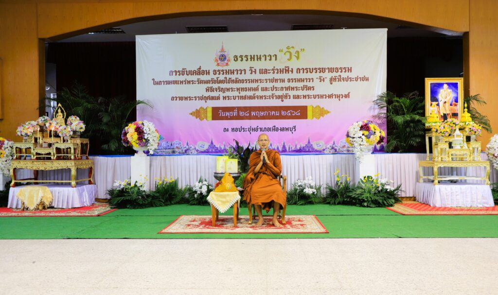 วันที่ 28 พฤษภาคม 2568 เวลา 14.00 น. ณ หอประชุมที่ว่าการอำเภอเมืองลพบุรี จังหวัดลพบุรี พระวชิรจริยาภรณ์ รองเจ้าคณะจังหวัดลพบุรี เจ้าอาวาสวัดเสาธงทอง พระอารามหลวง เป็นประธานฝ่ายสงฆ์ นายอารัญ วาริชา ผู้พิพากษาหัวหน้าศาลจังหวัดชัยบาดาล เป็นประธานฝ่ายฆราวาส ในพิธีเจริญพระพุทธมนต์และประกาศพระปริตร ถวายพระราชกุศลแด่พระบาทสมเด็จพระเจ้าอยู่หัว และบรมวงศานุวงศ์ ในการขับเคลื่อนธรรมนาวา วัง และร่วมฟังการบรรยายธรรมในการเผยแพร่พระรัตนตรัยโดยใช้หลักธรรมพระราชทาน ธรรมนาวา “วัง” สู่หัวใจประชาชน จาก พระมหาอุกฤษ ปภสฺสโร ป.ธ.๗,ดร. เจ้าอาวาสวัดทุ่งหนองอ้อ จังหวัดปราจีนบุรี โดยมี พระครูวิธานธรรมวิสุทธิ์ เจ้าคณะอำเภอเมืองลพบุรี พระครูวรธรรมมานุกิจ เจ้าคณะตำบลป่าตาล เจ้าอาวาสวัดเมืองใหม่พร้อมด้วย คณะสงฆ์จังหวัดลพบุรี ตุลาการ ทหาร ตำรวจ หัวหน้าส่วนราชการ ข้าราชการและพุทธศาสนิกชนชาวจังหวัดลพบุรี ร่วมพิธี ในการนี้ พ.อ.บุญสิทธิ์ ศรีพงห์ ประจำสำนักพระราณวังพิเศษ ระดับ 9 หัวหน้างานพระราชกุศล ประจำพระตำหนัก RCVK/HQ พระที่นั่งอัมพรสถาน ร่วมพิธีในครั้งนี้