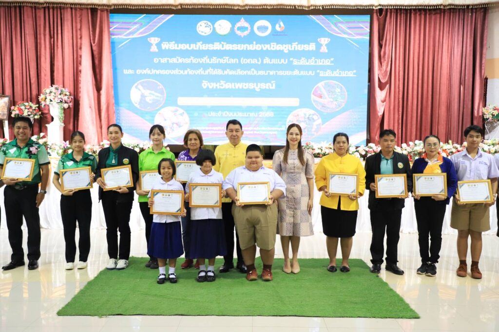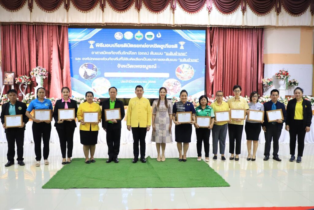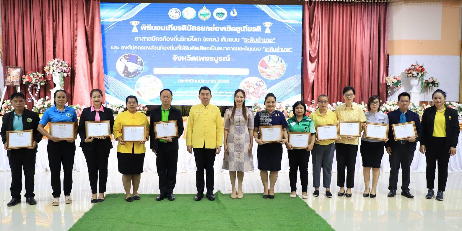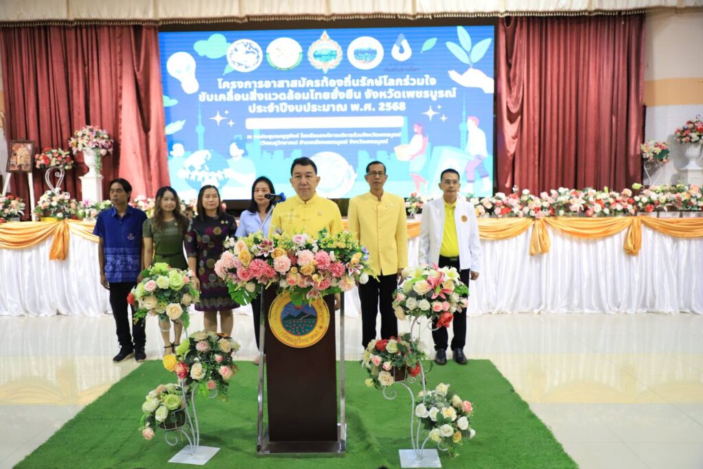 วันที่ 28 พ.ค.68 ณ หอประชุมชมพูภูพิงค์ โรงเรียนองค์การบริหารส่วนจังหวัดเพชรบูรณ์ (วังชมภูวิทยาคม) อำเภอเมืองเพชรบูรณ์ จังหวัดเพชรบูรณ์ นายศรัณยู มีทองคำ ผวจ.เพชรบูรณ์ เปิดโครงการอาสาสมัครท้องถิ่นรักษ์โลกร่วมใจ ขับเคลื่อนสิ่งแวดล้อมไทยยั่งยืนจังหวัดเพชรบูรณ์ ประจำปีงบประมาณ พ.ศ. ๒๕๖๘ เพื่อส่งเสริมให้ความรู้ความเข้าใจในการบริหารจัดการสิ่งปฏิกูลและมูลฝอยในชุมชน รวมถึงการปกป้องและรักษาสิ่งแวดล้อมด้วยกระบวนการมีส่วนร่วมของทุกภาคส่วน อาทิ อาสาสมัครท้องถิ่นรักษ์โลก (อถล.) เจ้าหน้าที่หน่วยงานของรัฐ ภาคเอกชน ประชาชน นักเรียน นักศึกษา เสริมสร้างจิตสำนึก กระบวนการเรียนรู้ และการพึ่งตนเอง รวมทั้งถ่ายทอดองค์ความรู้ในการบริหารจัดการสิ่งปฏิกูลและมูลฝอย การป้องกันและรักษาสิ่งแวดล้อมในเขตองค์กรปกครองส่วนท้องถิ่น ประสานความร่วมมือในการบริหารจัดการสิ่งปฏิกูลและมูลฝอย ให้อาสาสมัครท้องถิ่นรักษ์โลก (อถล.) มีความคิดริเริ่มสร้างสรรค์ในการร่วมกันผลักดันการบริหารจัดการสิ่งปฏิกูลและมูลฝอย การป้องกันและรักษาสิ่งแวดล้อมให้เกิดความเข้มเข็งและยั่งยืนในการนำขยะรีไซเคิลดัดแปลงเป็นสิ่งประดิษฐ์ เพื่อลดปริมาณขยะ เพิ่มมูลค่าขยะ และนำไปใช้ให้เกิดประโยชน์