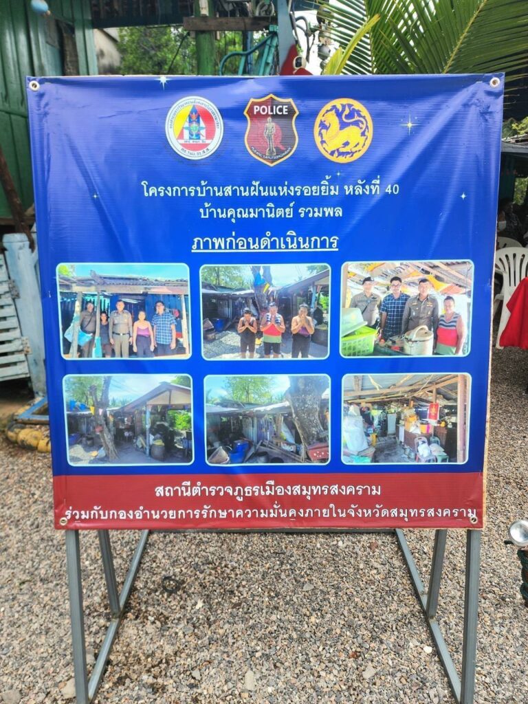 ลงพื้นที่ร่วมโครงการบ้านสานฝันแห่งรอยยิ้มหลังที่ 40 ของสถานีตำรวจภูธรเมืองสมุทรสงครามร่วมกับกองอำนวยการรักษาความมั่นคงภายในจังหวัดสส. เยี่ยมเยือนให้กำลังใจและมอบเงินจำนวนหนึ่งกับนางสาวมานิตย์ รวมพล ผู้ได้รับความเดือดร้อนทางด้านที่อยู่อาศัย อยู่บ้านเลขที่ 132 หมู่ที่ 6 ตำบลแหลมใหญ่ อำเภอเมืองฯ จังหวัดสมุทรสงคราม พร้อมทั้งแจกข้าวสารจำนวน 50 กระสอบกับราษฎรในพื้นที่ เหตุการณ์เป็นไปด้วยความเรียบร้อย