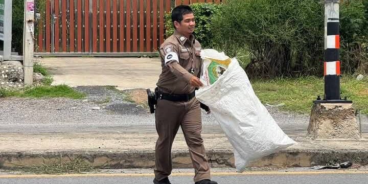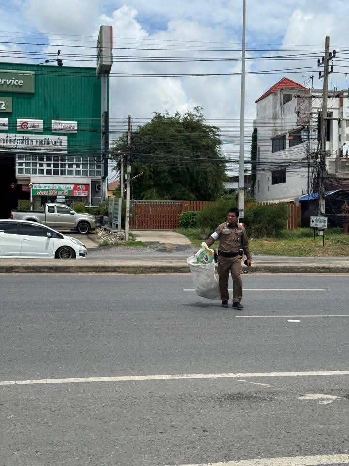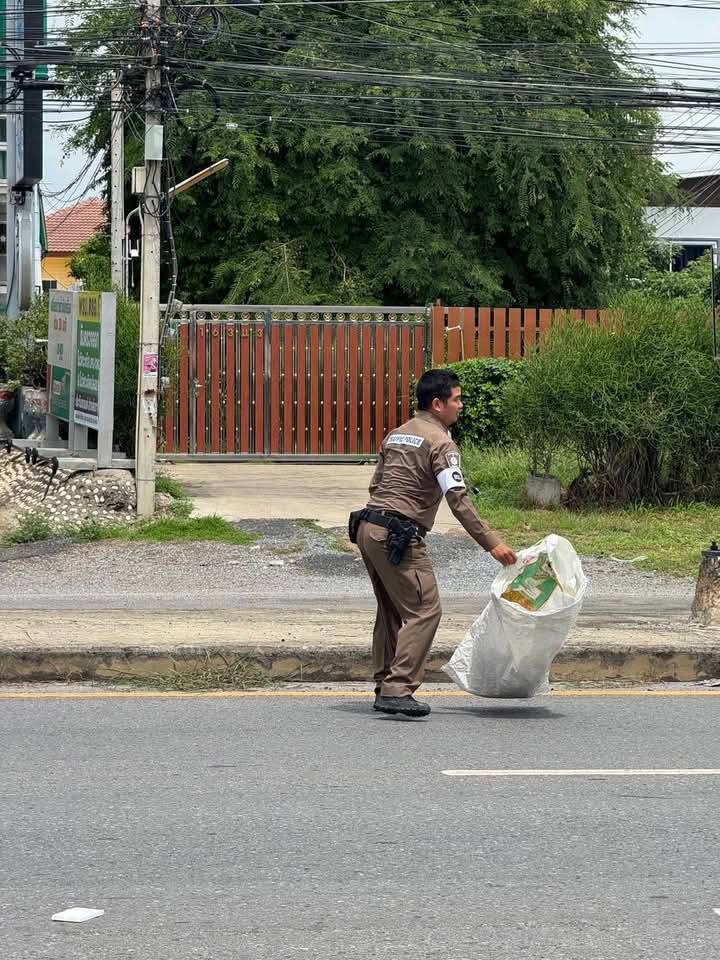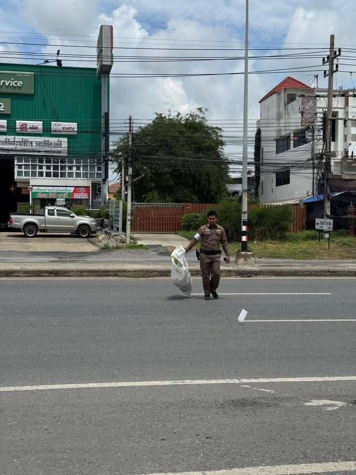 ทำความดีต้องยกย่อง เจอตำรวจเจอจิตอาสา เก็บขยะหล่นบนทางถนนไม่รอช้าหยิบถุงเดินไปเก็บขยะเป็นภาพที่ประทับใจใครเจอเห็นก็ตบมือดังๆ
