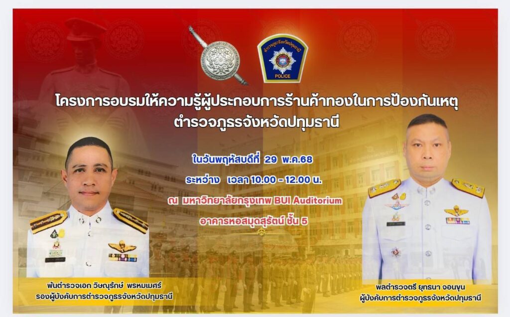 ทั้งนี้ เพื่อเสริมสร้างความรู้ ความเข้าใจเกี่ยวกับแนวทางการป้องกันอาชญากรรมที่อาจเกิดขึ้น , มีทักษะในการสังเกต วิเคราะห์ และรับมือกับสถานการณ์เสี่ยงได้อย่างเหมาะสม , ส่งเสริมความร่วมมือระหว่างเจ้าหน้าที่ตำรวจและผู้ประกอบการร้านค้าทองในการแลกเปลี่ยนข้อมูล ข่าวสาร และการเฝ้าระวังภัย และ เพื่อสร้างเครือข่ายผู้ประกอบการร้านค้าทองในพื้นที่ที่มีความเข้มแข็ง สามารถแจ้งเหตุได้อย่างรวดเร็วและมีประสิทธิภาพ
