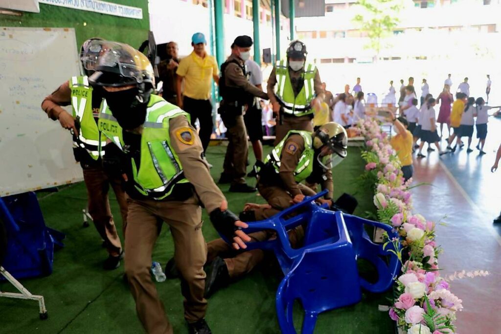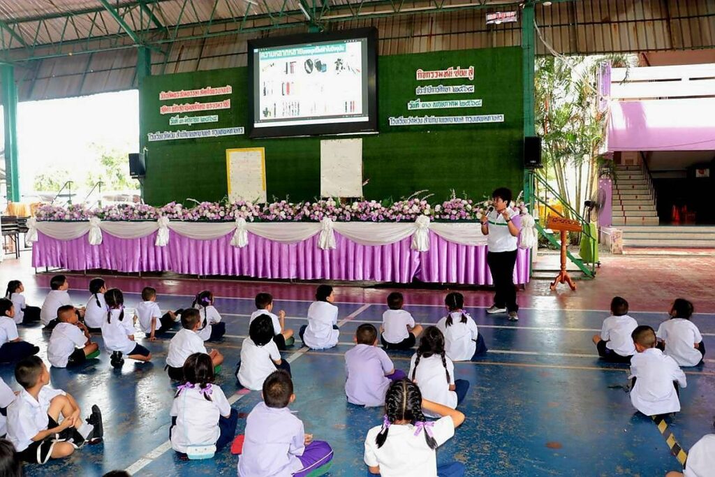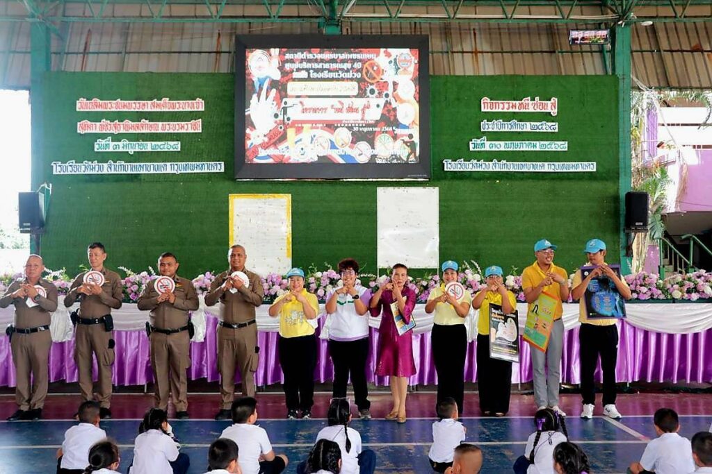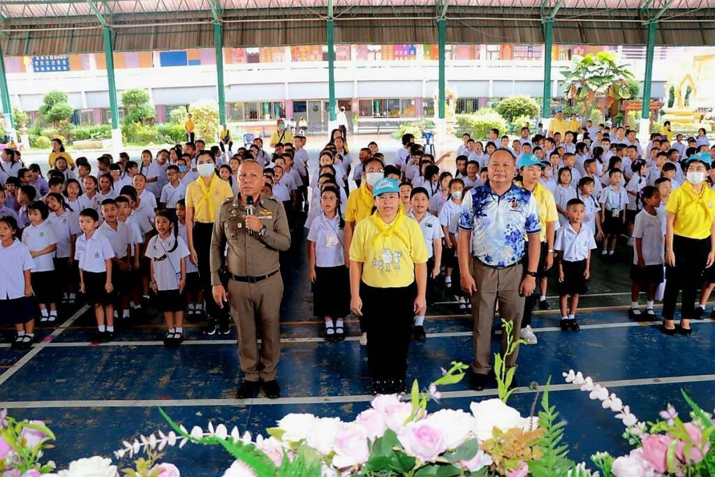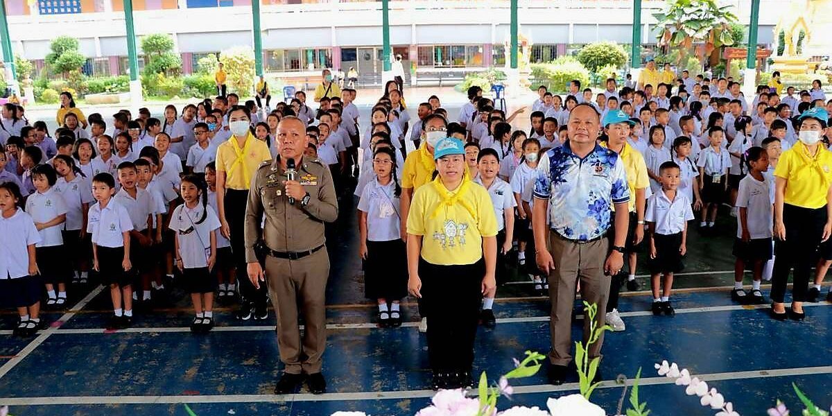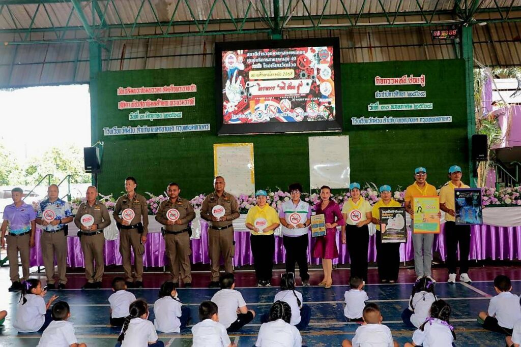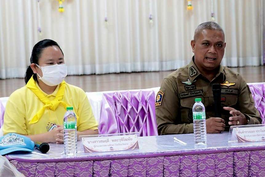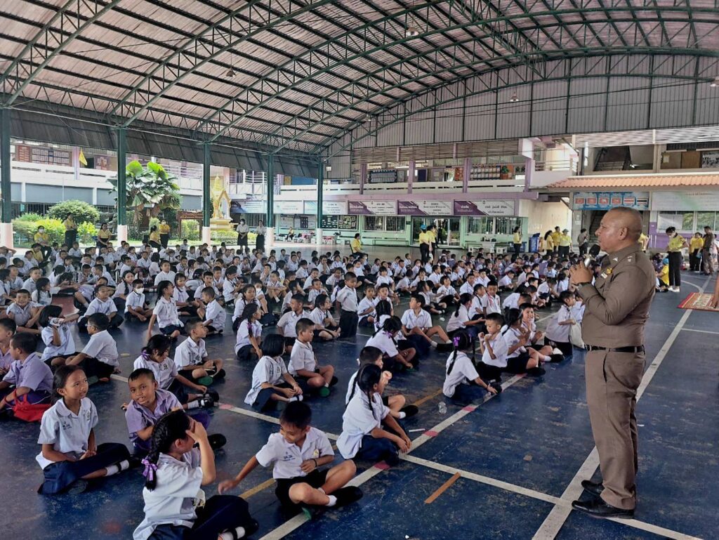 เมื่อเวลา 13.00 น. วานนี้ (30 พ.ค.) ที่บริเวณโรงเรียนวัดม่วง แขวงหลักสอง กรุงเทพมหานคร พ.ต.อ.ปราโมทย์ จันทร์บุญแก้ว ผกก.สน.เพชรเกษม พ.ต.ท.กมเลศ พูลสุขโข รอง ผกก.ป.สน.เพชรเกษม พ.ต.ต. บัญชา แก้วไทรท้วม สวป.(ชส.) สน.เพชรเกษม ร.ต.ท. ชัยพัชร์ โมทอง (ครูพี่โชเล่) รอง สวป.(ชส.) สน.เพชรเกษม ครูตำรวจแดร์ พร้อมเจ้าหน้าที่ศูนย์สาธารณสุข 40 บางแค และ ตำรวจชุมชนสัมพันธ์ เจ้าหน้าที่สายตรวจ สน.เพชรเกษม ร่วมกันออกปฏิบัติหน้าที่บรรยายให้ความรู้เกี่ยวกับการป้องกันและแก้ไขปัญหายาเสพติดและบุหรี่ไฟฟ้า และถ่ายทอดนำวิธีเอาตัวรอดให้กับครูและนักเรียน บุคลากร ในด้านการป้องกันตนเอง หากมีสถานการณ์ที่อาจกระทบต่อชีวิต ตลอดจนวิธีการเอาตัวรอด เมื่อตกอยู่ในสถานการณ์ที่คับขัน ไม่ปลอดภัย (Active Shooter) บุคคลคลุ้มคลั่ง วิกลจริต หรือเหตุการณ์ที่อาจเป็นอันตราย หรือกระทบต่อชีวิตและทรัพย์สิน โดยยึดหลัก Run Hide Fight “หนี ซ่อน สู้” และ สาธิตการใช้ไม้งามระงับเหตุ ตามแนวทางนโยบายของสำนักงานตำรวจแห่งชาติ
