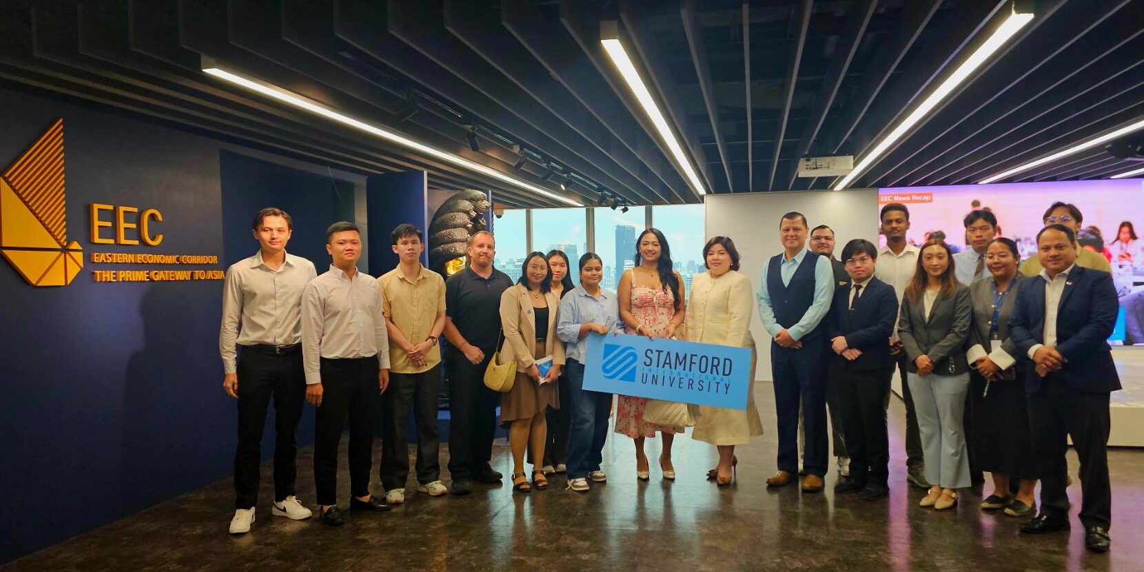 โดยคณะนักศึกษาจากมหาวิทยาลัยนานาชาติแสตมฟอร์ด ได้ร่วมรับฟังการบรรยายจากผู้แทนของสำนักงาน สกพอ. เกี่ยวกับความสำคัญเชิงยุทธศาสตร์ของพื้นที่ อุตสาหกรรมหลัก และสภาพแวดล้อมด้านการลงทุน ซึ่งช่วยเสริมสร้างความเข้าใจในเรื่องการบูรณาการเศรษฐกิจผ่านประสบการณ์จริงและสนับสนุนโครงการเรียนของนักศึกษาอย่างมีประสิทธิภาพต่อไป