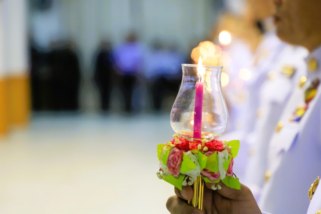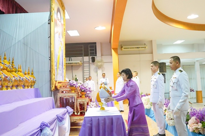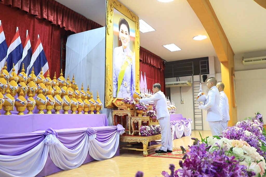 โดย ผู้ว่าราชการจังหวัดลพบุรี เป็นประธานในพิธีถวายพานพุ่มเงิน-พุ่มทอง เปิดกรวยกระทงดอกไม้ธูปเทียนแพ ถวายราชสักการะ เบื้องหน้าพระฉายาลักษณ์ จุดเทียนมหามงคล กล่าวถวายราชสดุดีและกล่าวนำถวายพระพรชัยมงคล จากนั้น ได้ต่อโคมเทียนให้หัวหน้าส่วนราชการ จุดเทียนถวายพระพร นำร้องเพลง “สดุดีจอมราชา” และกล่าวนำ “ทรงพระเจริญ” 3 ครั้ง