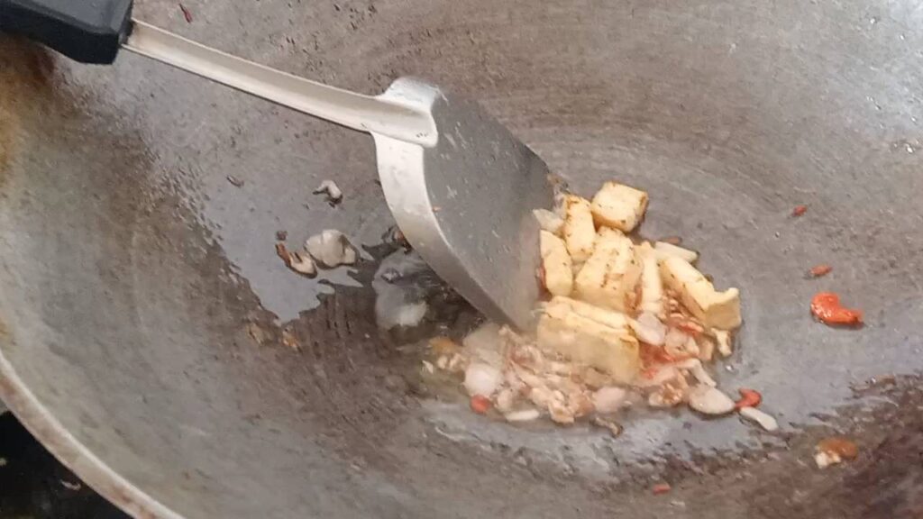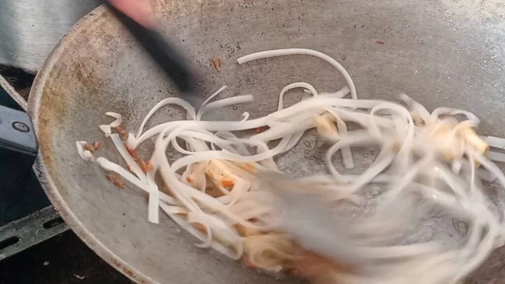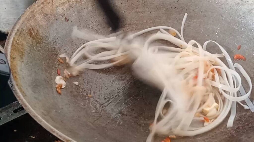 แล้วเดินตามกลิ่นหอมๆ ก็ถึงสตรีทฟู้ดร้านดังได้ไม่ยาก หน้าร้านตั้งกระทะผัดไทยและกระทะหอยทอด พร้อมวัตถุดิบสดๆ ที่ยกมาอวดโฉมยั่วน้ำลาย สำหรับ ผัดไทย